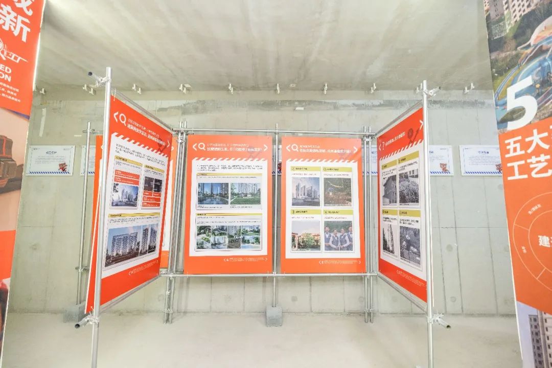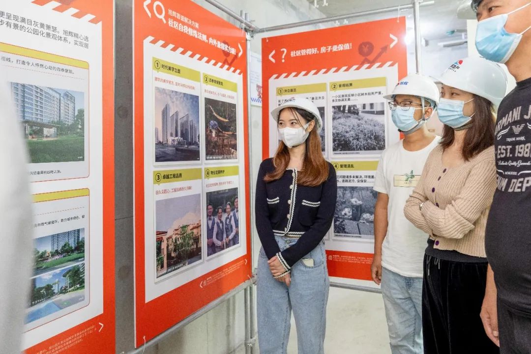 走入一间房间,偶遇一处干货满满的吸睛展架。围绕着这些醒目的展示,客户们参观得津津有味。搭配旭辉工程师深入浅出的讲解,那些离美好生活很近的建造细节都如“彩蛋”般被一一挖掘。