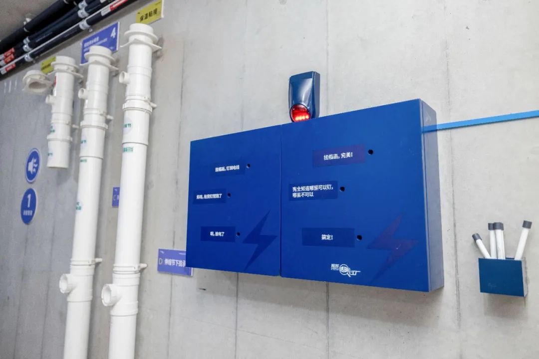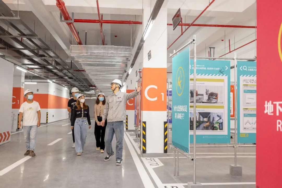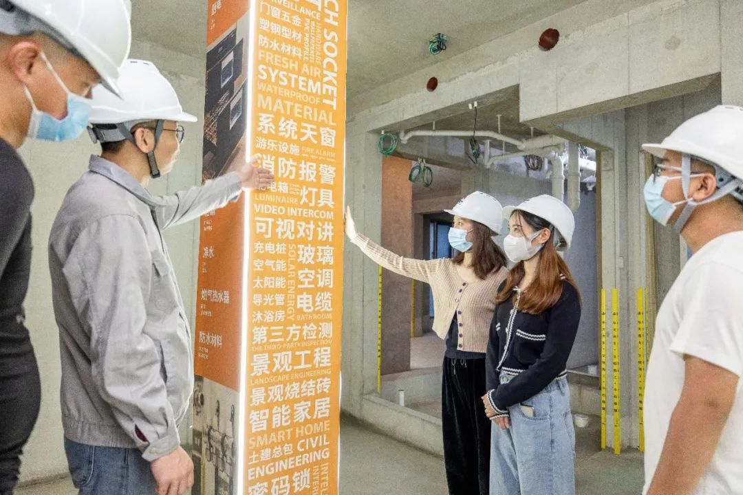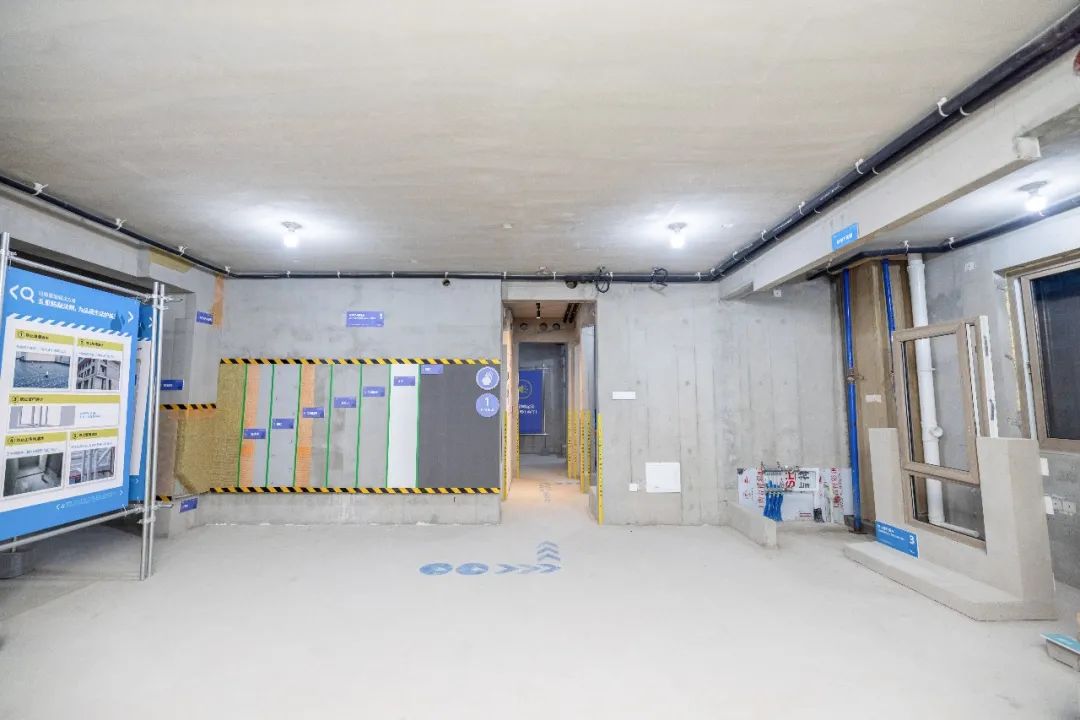 旭辉工程师们充分从客户视角出发,从前期策划上,便格外注意优化体验路线,选取一层楼作为透明工厂展示间,并同时串联地库等其他展示空间,将贯穿房屋建造全过程的工艺工法、创新细节进行完整、集中地展示。参观者不需东奔西走,就可以在更短的时间内“尽窥堂奥”。