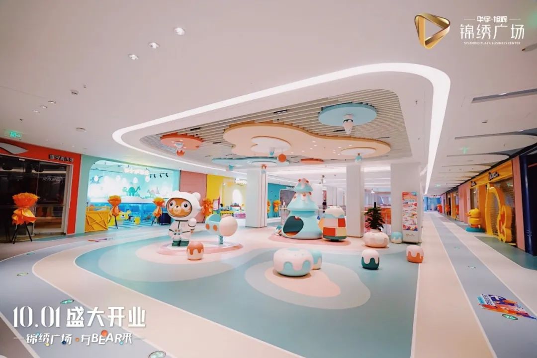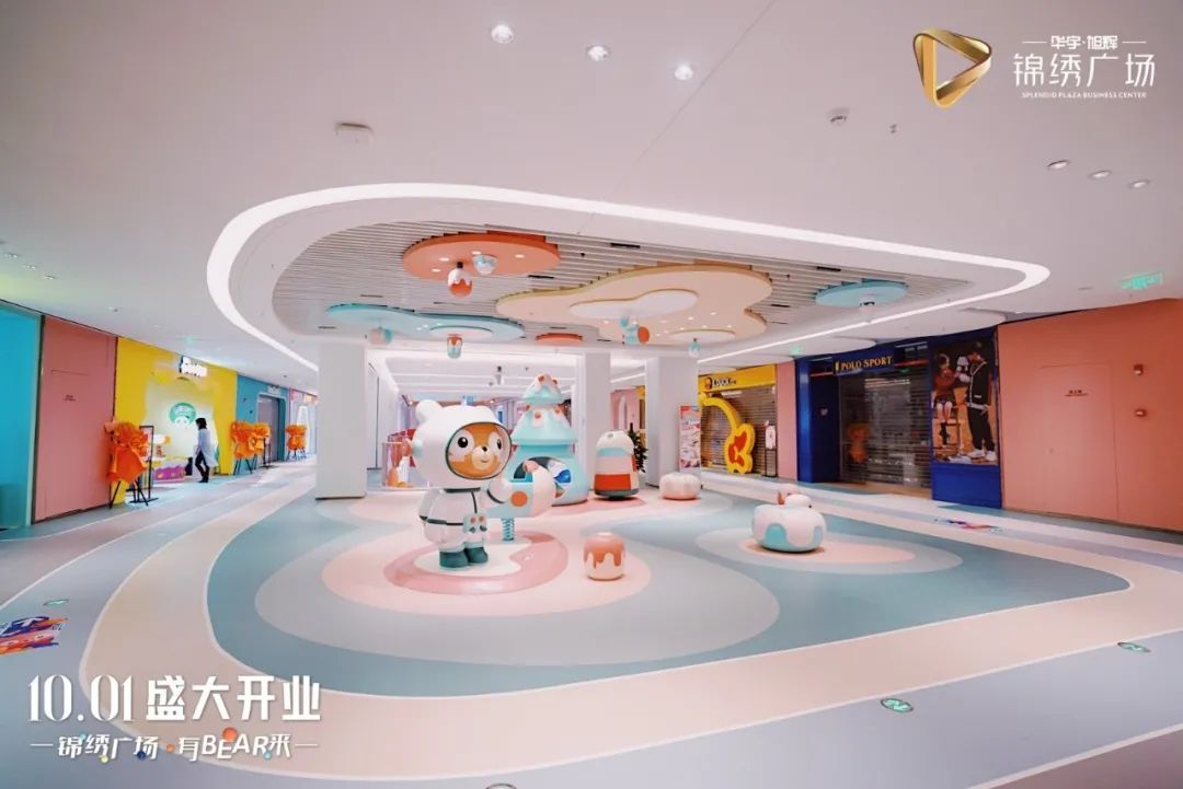 如位于3F全儿童业态楼层,是一个精装的特色童趣空间,华宇·旭辉锦绣广场关注儿童成长,挖掘品牌亲子家庭转换和整合,精心打造童趣主题空间——五大奇幻内景欢趣乐园,极大限度地放大童趣特色,提高了商业空间的使用率。