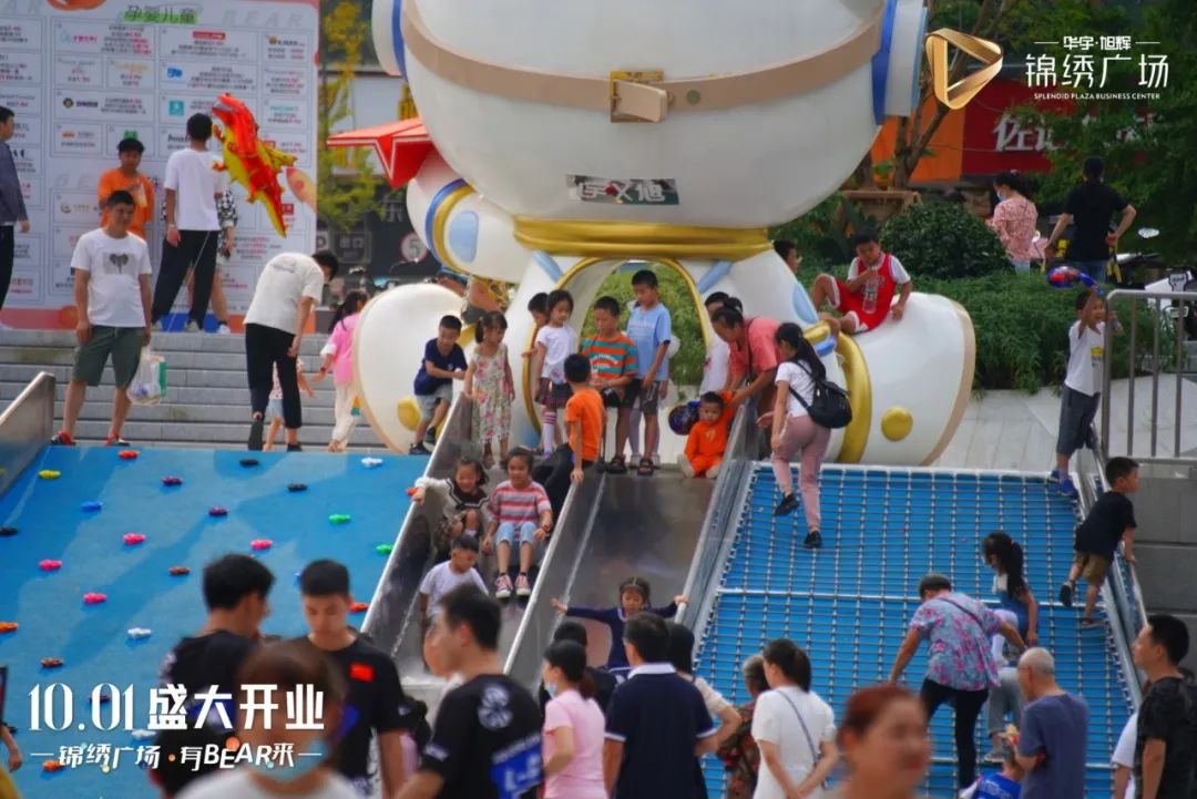 华宇·旭辉锦绣广场开业之前通过联动周边16个社区获得当地居民高度关注,此次开业主题为“有bear”而来,量身定制的3000㎡的“旭小熊乐园”,超人气彩虹滑梯,儿童文化IP"海鸽和你”千人赛事等一系列重磅活动,躁动龙潭。