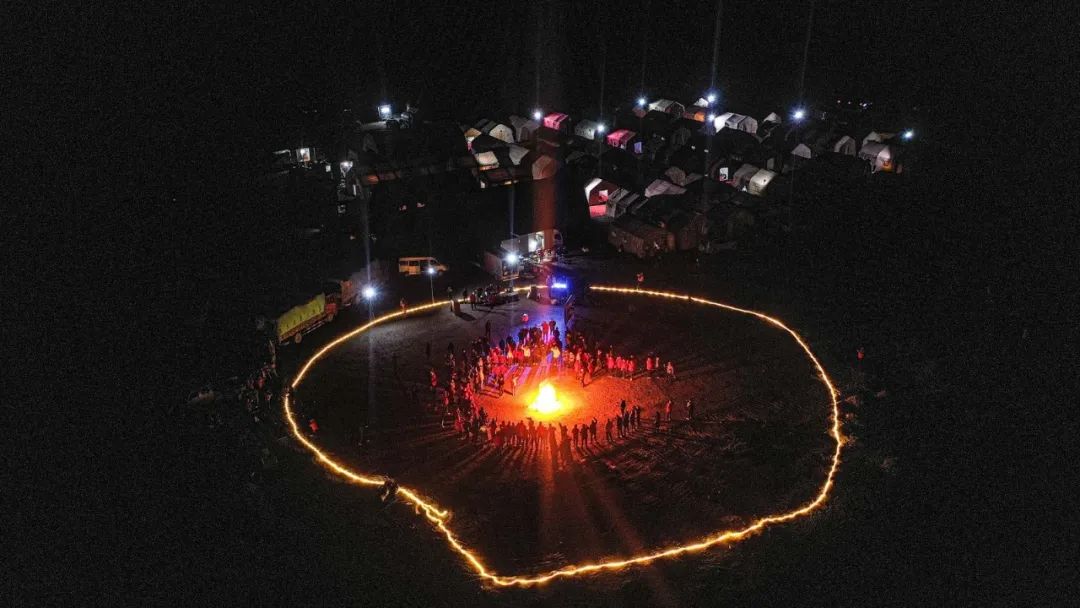夜晚,戈友们相聚在星空下的戈壁音乐节,献礼党的百年华诞,摇滚与红歌碰撞出最强音量。茫茫戈壁上,冉冉烟花中,精彩绝伦、震人心脾的视听盛宴令人久久难忘。