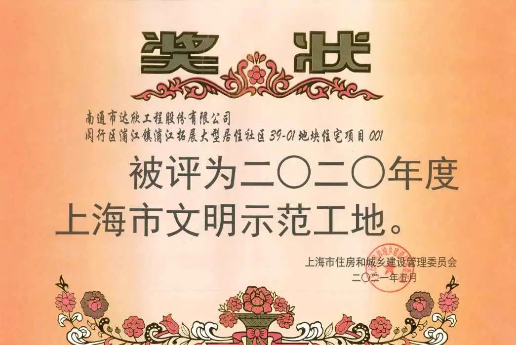 获2020年度上海市文明示范工地
