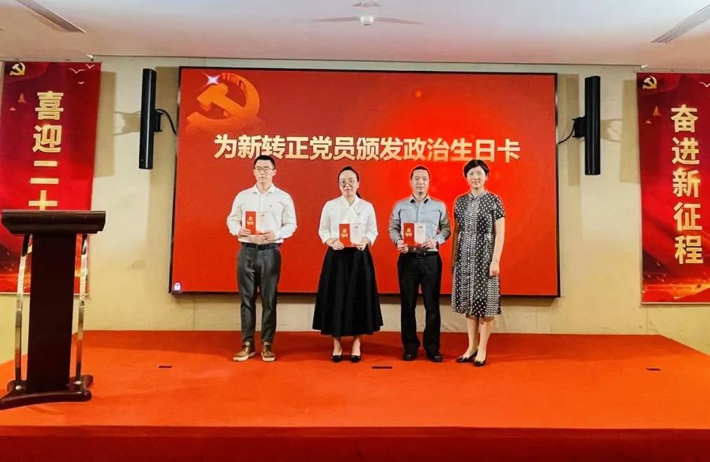 新虹街道党群中心主任徐艳为今年三名新转正党员颁发政治生日卡,勉励新转正党员铭记党员身份、不忘入党初心,继续投身到企业高质量发展、社会主义建设的伟大事业中来,以实际行动擦亮党员身份。