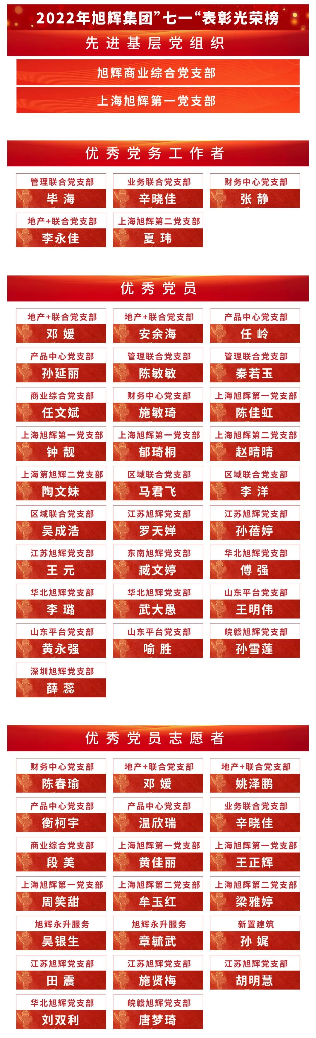 荣获“先进党支部”荣誉称号的上海旭辉第一党支部书记作经验分享,优秀党务工作者代表、优秀党员代表、优秀党员志愿者代表分别发表获奖感言。