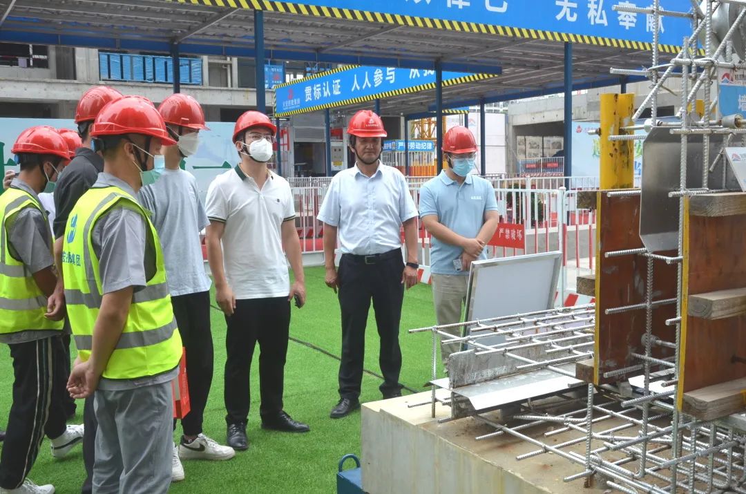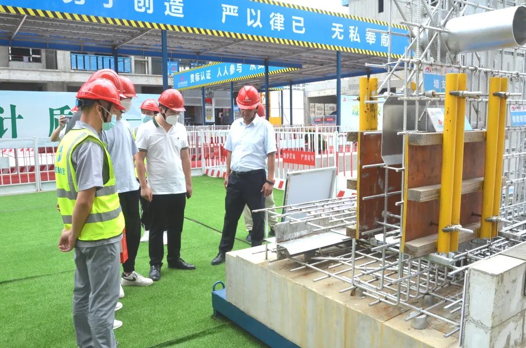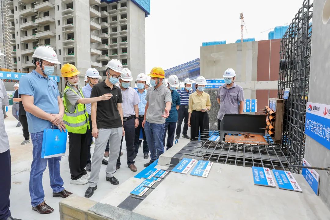 此次观摩以夏雨季施工现场可能出现的防汛薄弱环节——深基坑重大危险源管控为重点,而以“旭辉建造2.0”体系为“武装”的旭辉·滨海江来,更是将建造2.0体系中“三大先行——车库抢先行”的技术落到实处,向观摩的100余名政府领导、同行展示了地下室防渗漏及基础质量管控、地下室结构标准模块做法等施工重点、难点、亮点等。