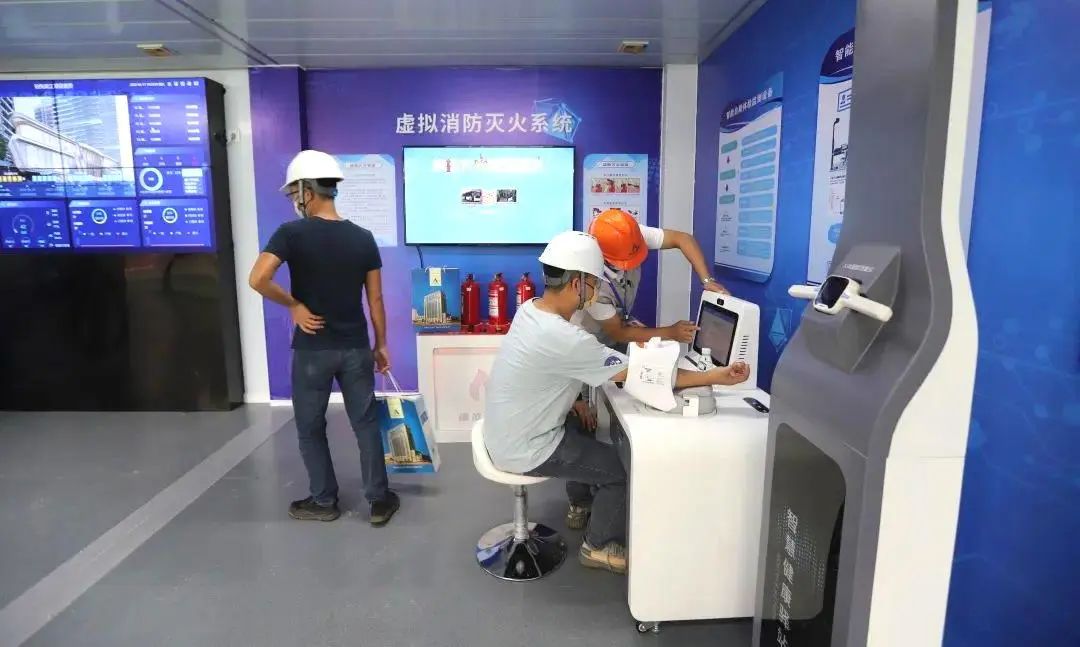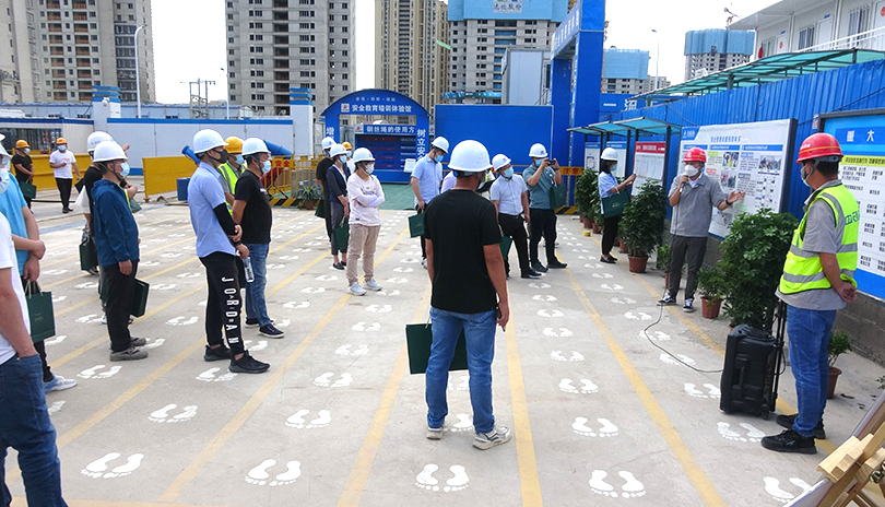 在南昌旭辉中心的现场观摩中,参会人员不仅针对安全生产巡查迎检、环保督察、扬尘治理、汛期安全防范、疫情防控等展开深入交流,更有序观摩了数字工地智能展示区、VR安全模拟体验区、标准化防疫消杀区,探索通过科技手段实现现场预警、及时处理,规范工友行为,做到安全生产、文明施工。