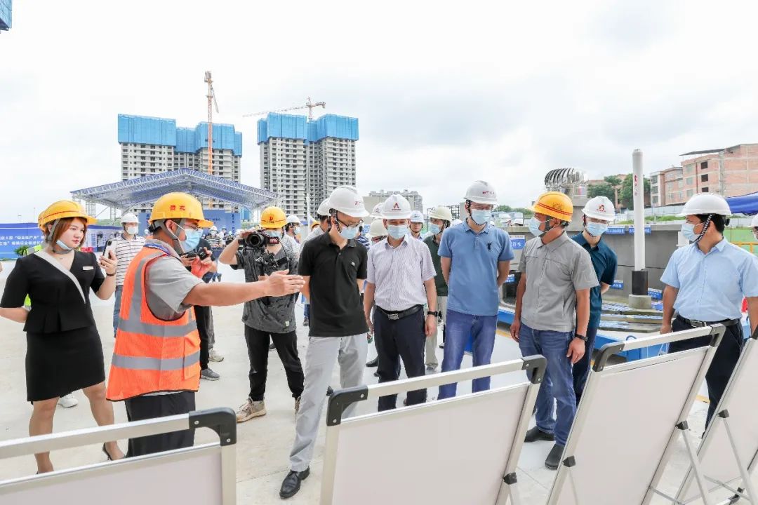 观摩当天,与会领导一一参观了铂悦湘江安全标准化布置、安全体验、双重预防机制、智慧工地运用、样板引路工艺和质量标准化等多方面的措施与做法。