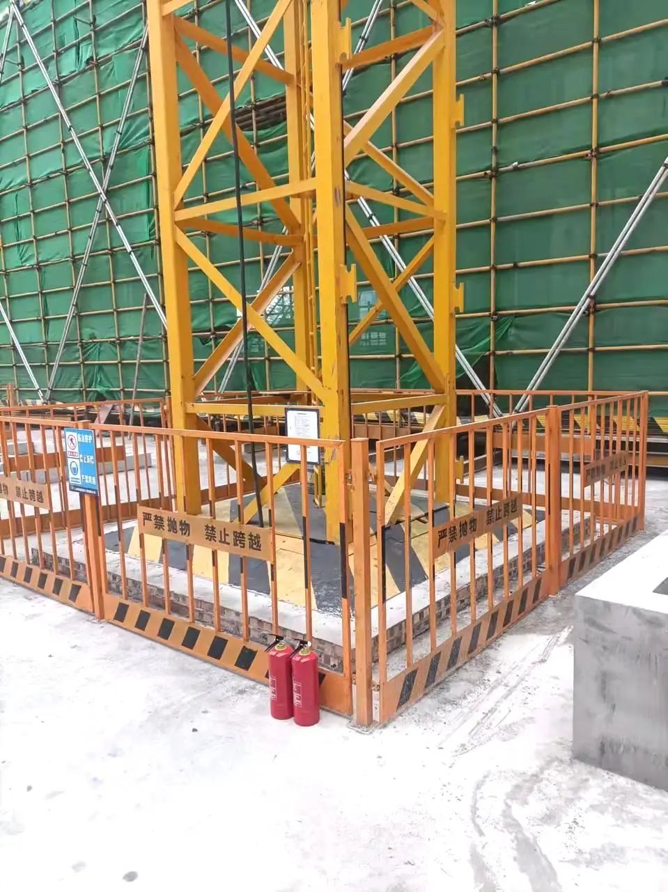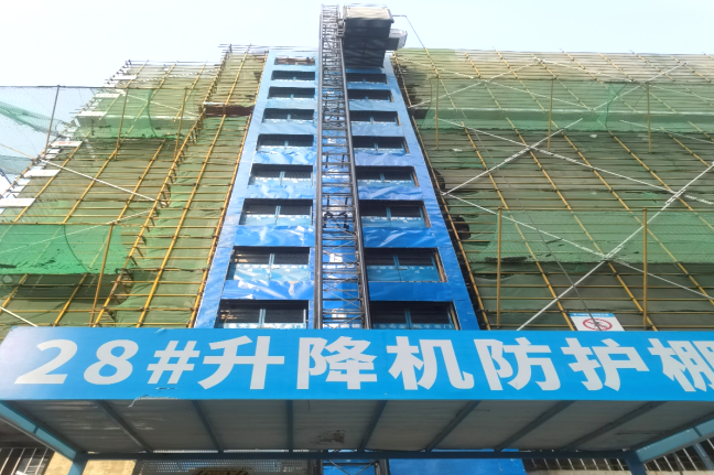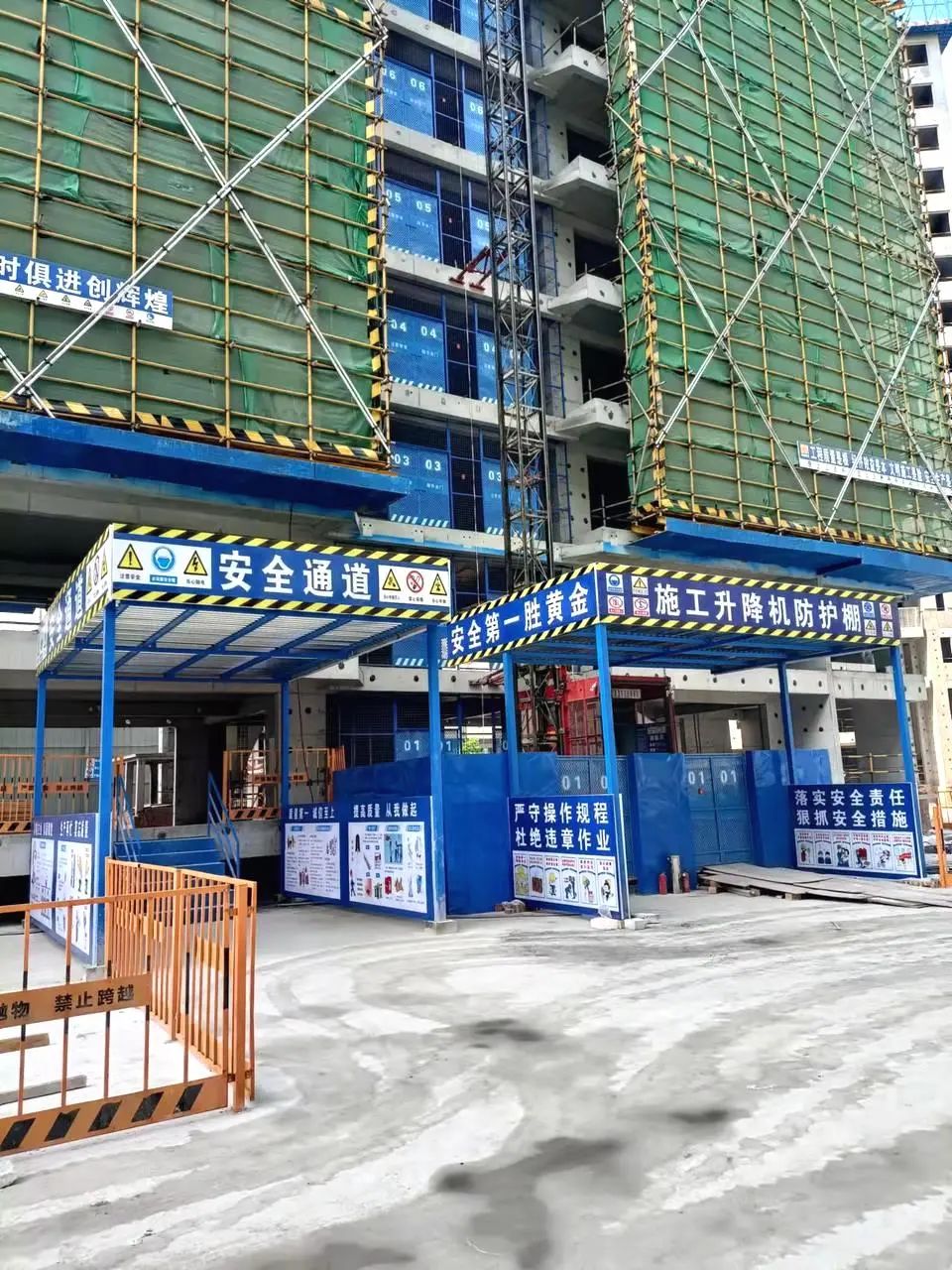 施工现场的安全化,采用楼层人货电梯防护棚、楼栋安全通道、楼层临边定型化防护等多样性的防护措施,有效提高安全系数,使施工人员安全得到保证。
