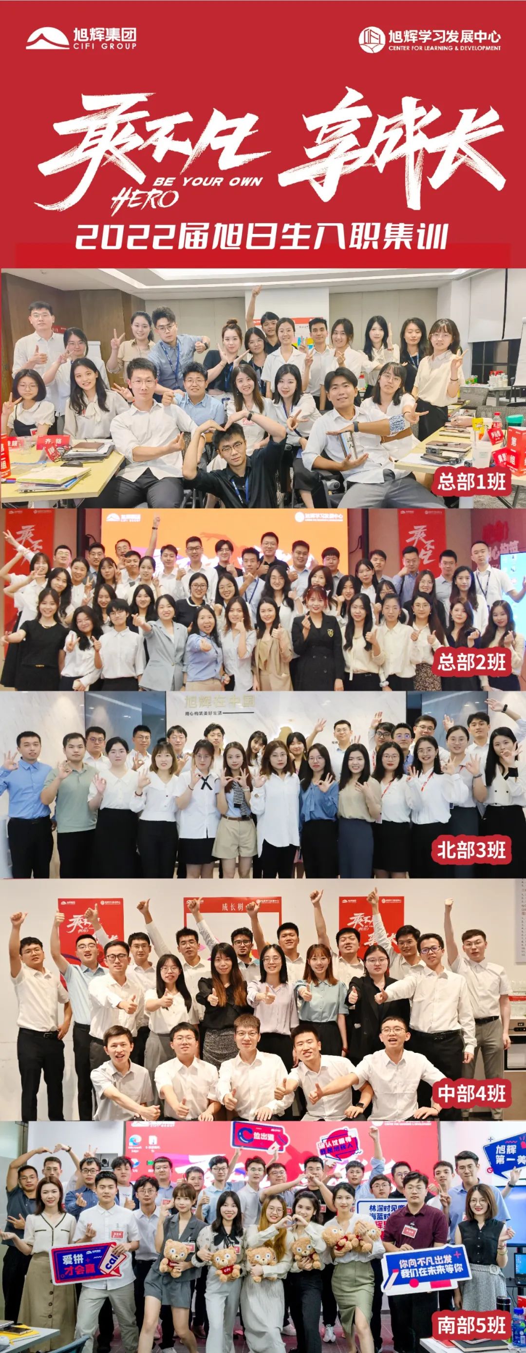 虽受疫情影响,旭辉依然在今年如期举办一年一度的旭日生入职集训,采用“线上+线下”相结合的新模式,将分布于总部、北部、中部、南部四大片区的140余名旭日生划分为五个班级,线上采用空中课堂玩转“云授课”,线下通过属地化班级设置丰富精彩的课程活动,如项目踩盘、职业转型工作坊、班会学习、个人作业等,为旭日生们搭建充满青春梦想的职场舞台,助力他们激昂启航,开启新的人生篇章!