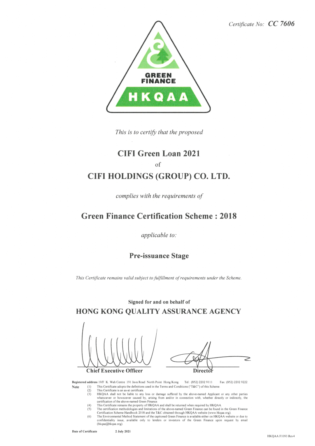 2021年7月,旭辉首次获得初始额度27.98亿港元的绿色银团贷款。该笔绿色贷款已获得香港品质保证局颁发的绿色金融发行前阶段证书,并在由《财资》杂志(The Asset)主办的2021年度可持续资本市场奖(Sustainable Capital Markets Awards 2021)评比中荣获房地产类别的最佳绿色银团贷款 (Best Green Syndicated Loan)殊荣。