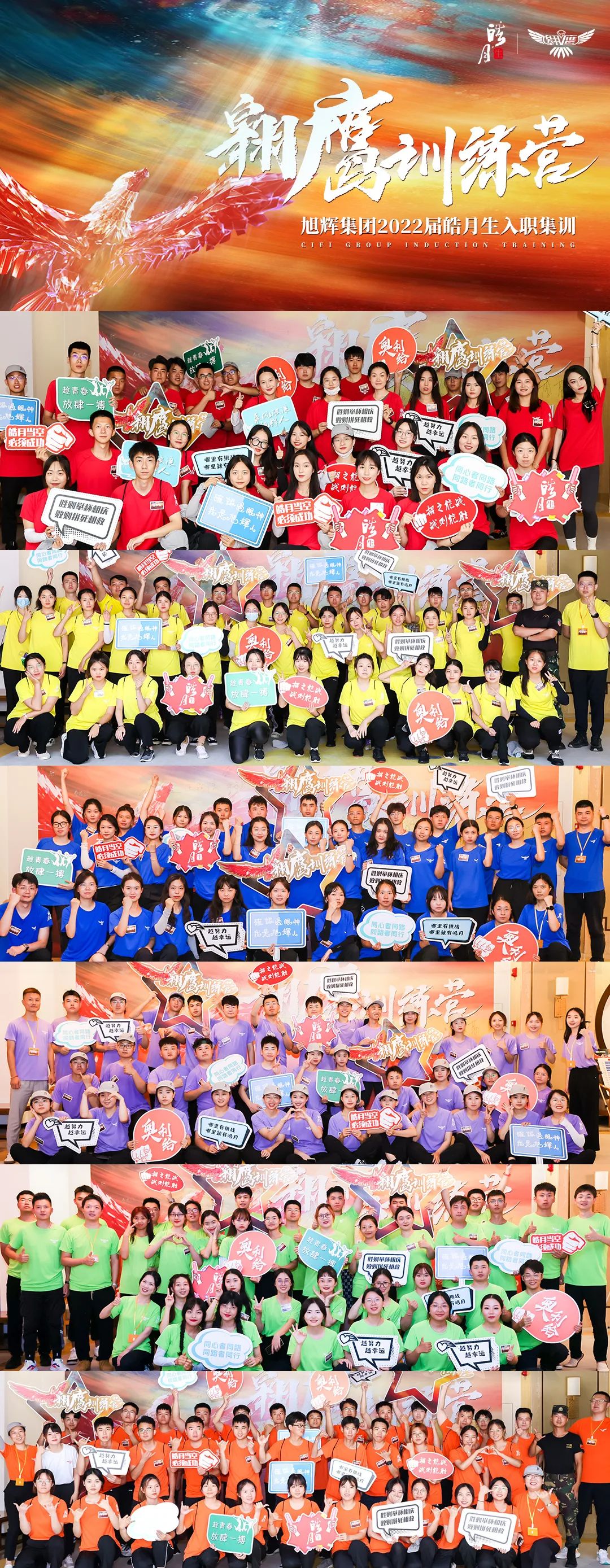 从相聚到离别,从陌生到熟悉,2022届翱鹰训练营落下帷幕。旭辉2022届近700名管培生已经陆续加入,完成第一关“入职集训”的考验,体验了从校园到职场的身份转变,准备鹰击长空、振翅翱翔!