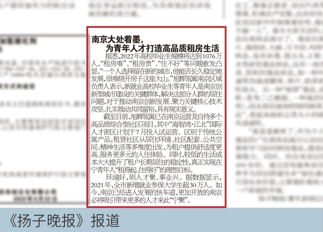 作为南京区域内最高端的租赁标杆项目之一,海智湾·江北十二星座街区自筹备建设期起就备受各方关注。不仅产品品质过硬,更助力城市引才留才、推进“职住平衡”,获《南京晨报》、《扬子晚报》等官媒报道。
