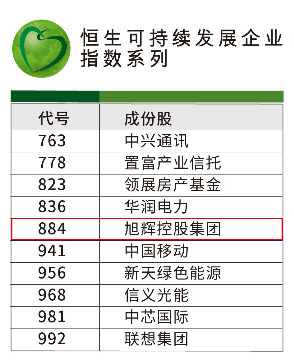 旭辉入选恒生可持续发展企业基准指数1