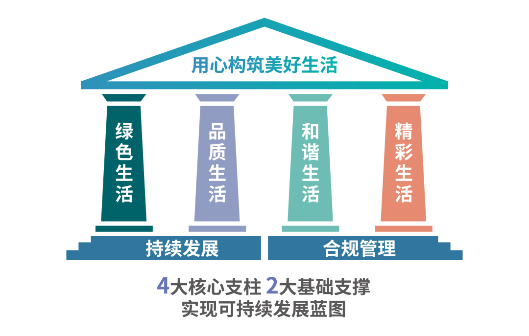 旭辉自2019年成立ESG管理委员会及ESG工作小组,系统性、规范化地推进可持续发展工作。同时,聚焦“四大生活”——绿色生活、品质生活、和谐生活、精彩生活,推动ESG工作的分解和落地,并以合规管理和可持续发展为根基,积极履行企业社会责任、探索可持续发展创新之路,向成为ESG模范企业的目标而不断迈进。