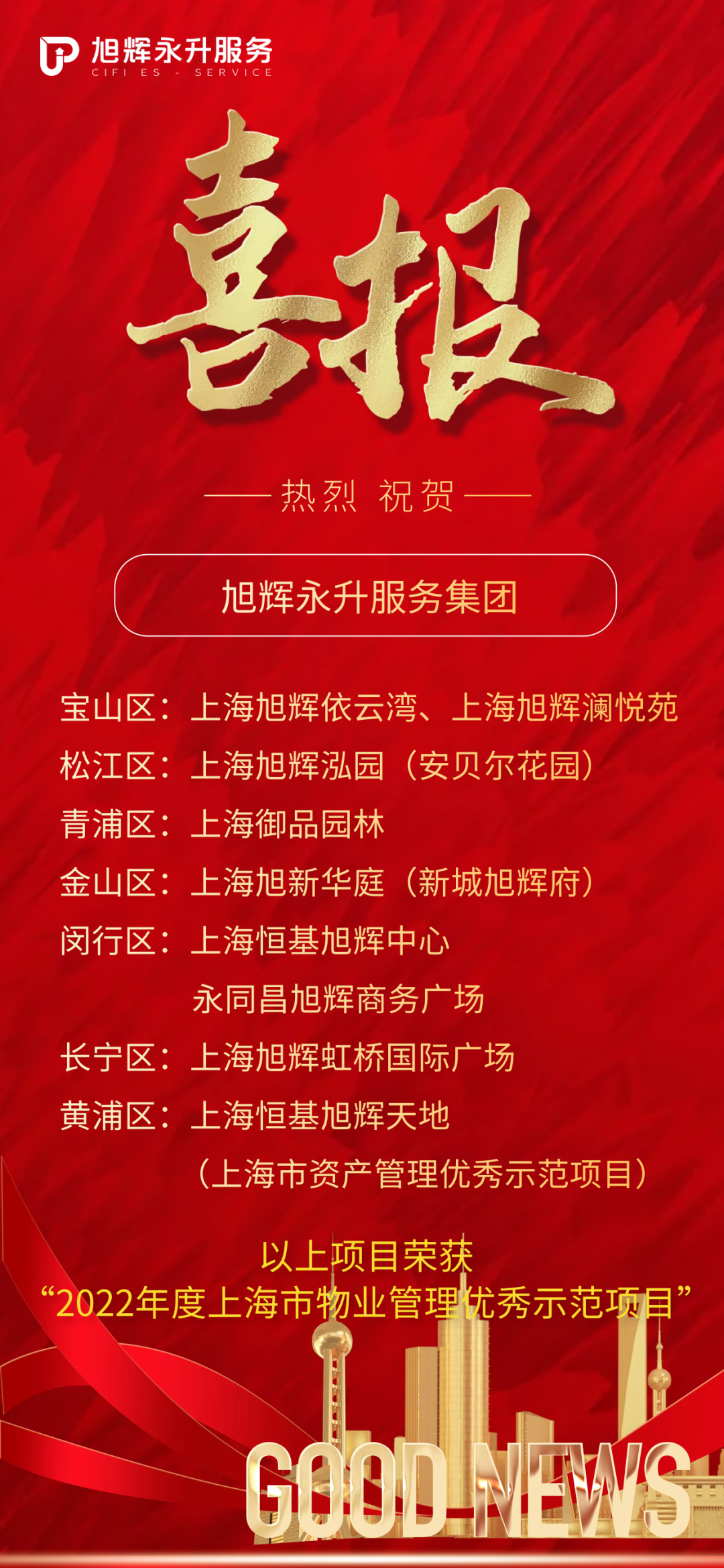 旭辉永升服务9个项目获评2022年度上海市物业管理优秀示范项目