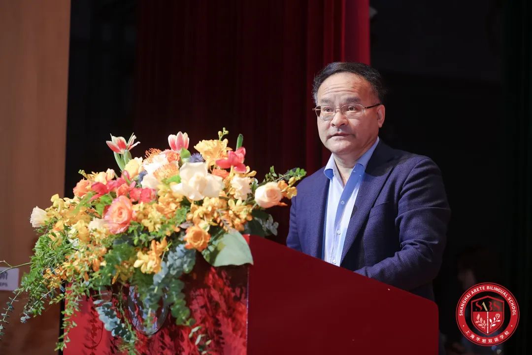华旭双语的典礼现场,非常荣幸地邀请到了上海市教育委员会副主任倪闽景莅临并致辞。倪主任表示,教育要让孩子面临不确定的未来世界时能拥有应对的确定性能力。在华旭双语,他看到了学生在体育、科技、艺术方面表现出来的浓厚兴趣,并高度认可华旭双语富有特色的课程体系和学生自主探究的丰富实践,鼓励并祝愿学校继续胸怀大志,实现一所影响世界的中国学校的愿景,从八年这个起点一直延续下去。