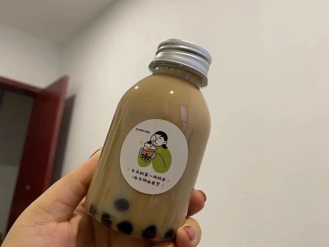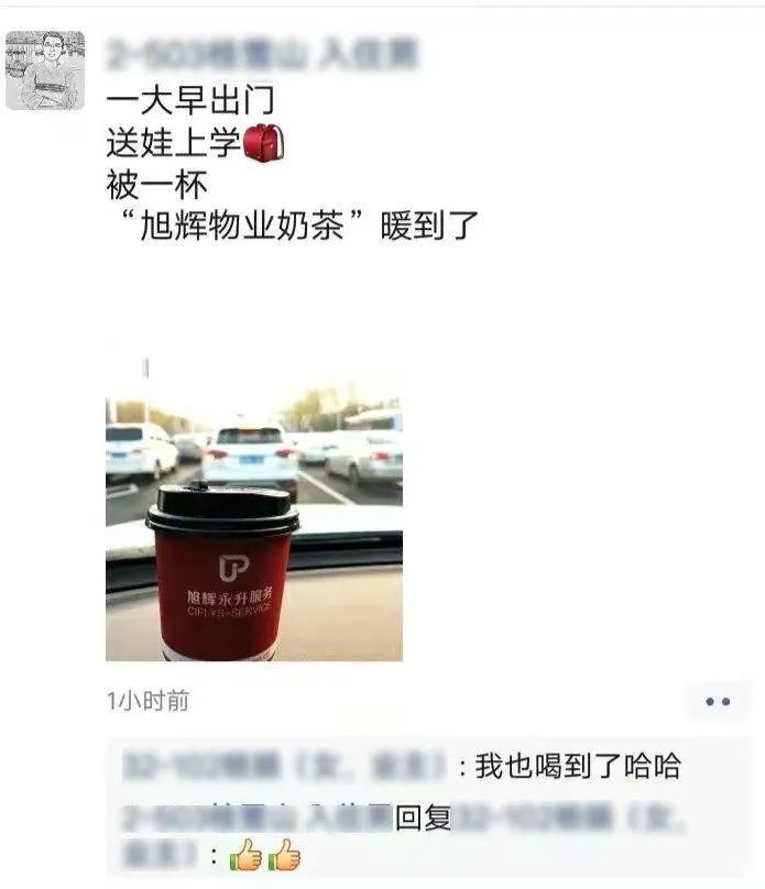 “一大早出门送娃上学,被一杯物业的奶茶暖到了”