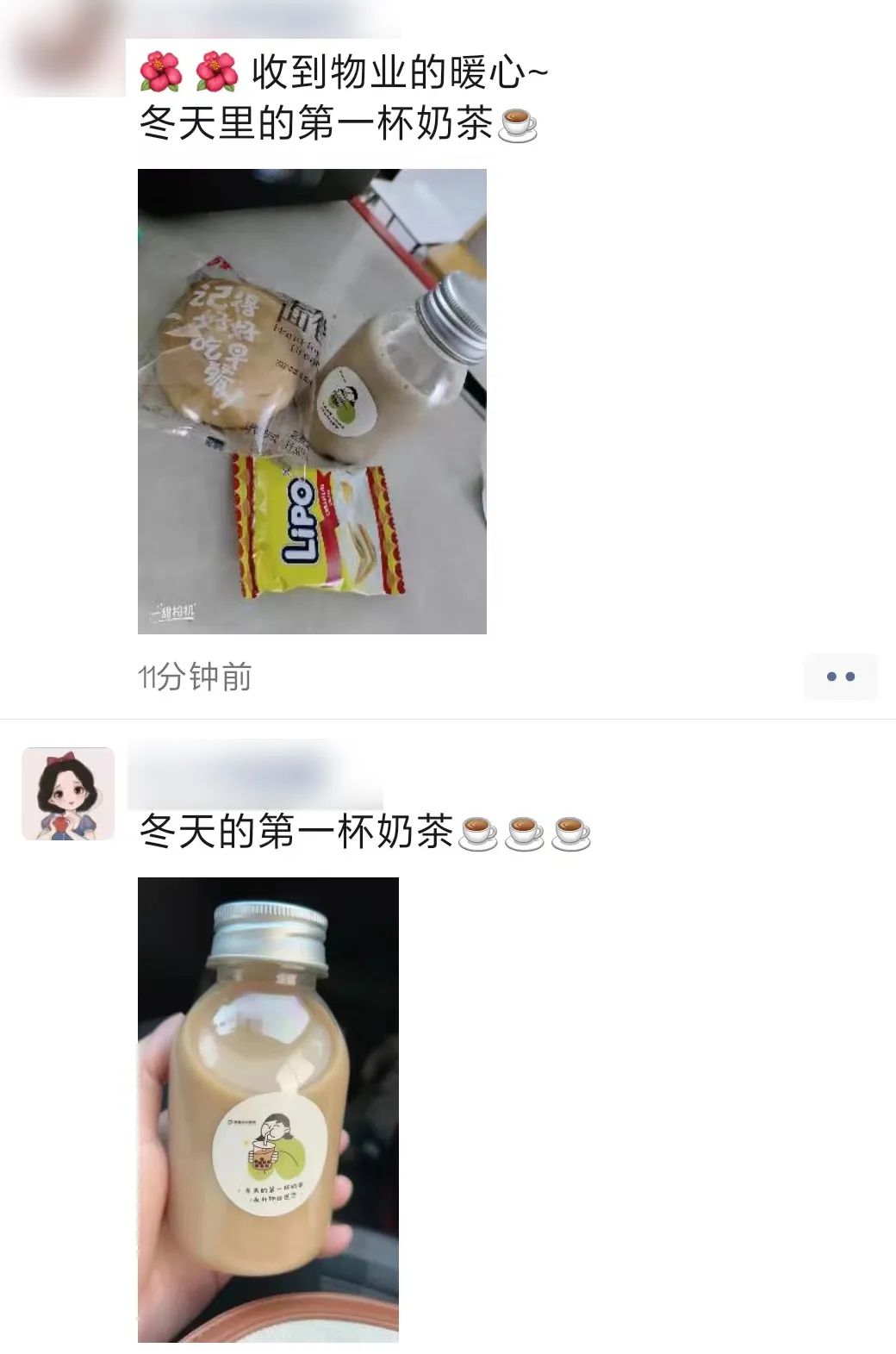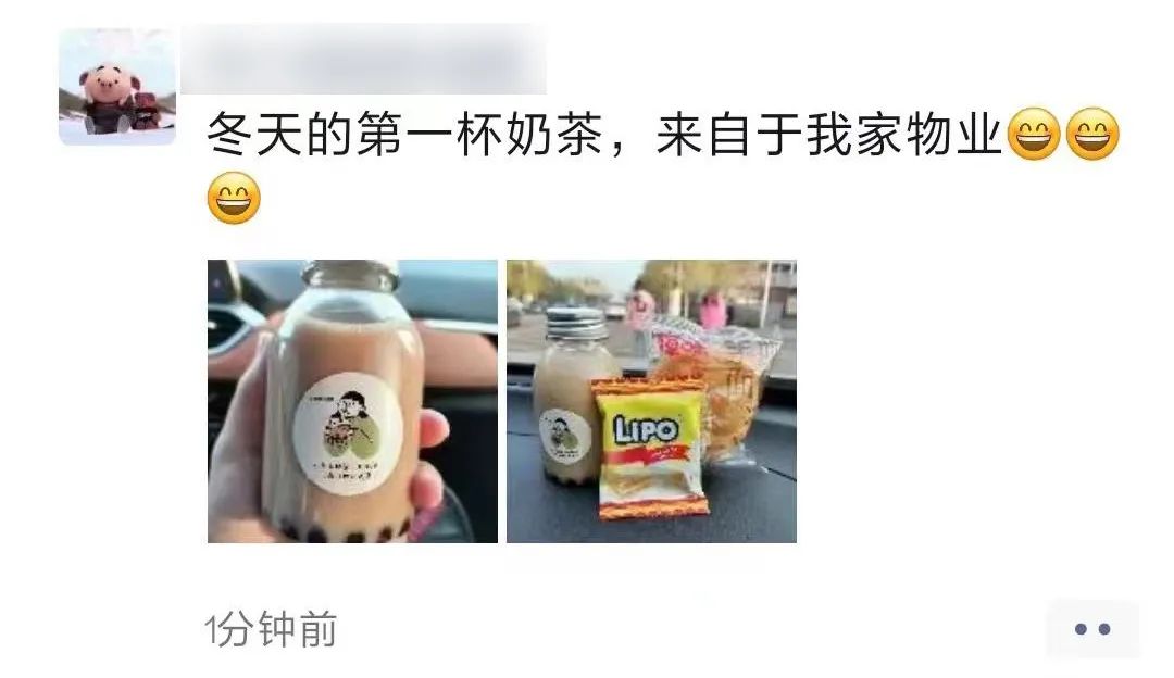 “冬天的第一杯奶茶,来自物业”