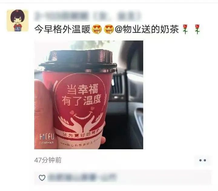 “物业很贴心,美好的心情从一杯奶茶开始。”