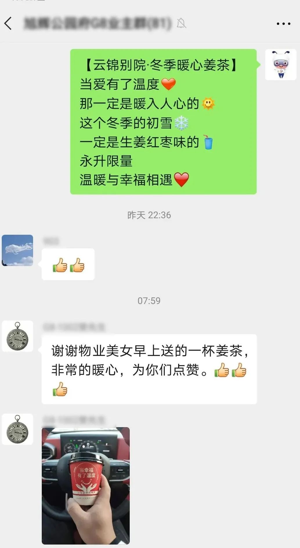 业主们的花式点赞,让一大早起来准备暖茶的