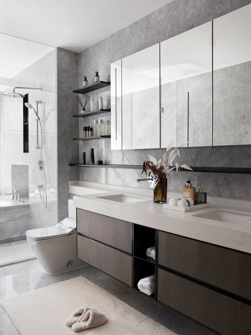 以用水为例,旭辉铂悦湘江采用分户式直饮水系统,在精装修各户型厨房设置净水装置,让业主畅享高品质饮水;淋浴冷热水点及浴缸冷热水点设置恒温混水阀,拒绝“忽冷忽热”,给予家人更恒温舒适的体验。