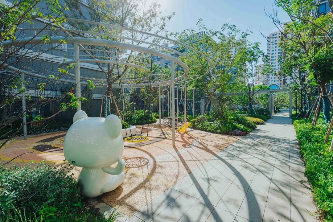 社区全龄活动空间定制浓荫花境里的“全生命周期森系秘境”,内含多种植物、社交空间、漫步步道、童趣场域等,孩童们在童趣世界里自在成长,年轻人在专属健身场所尽情运动,更有多重适老无障碍设计、健康直饮水……老少皆有“趣”所,为全年龄段的业主营造可交流、可放松的优美社区环境。