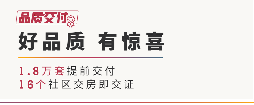2022年,旭辉在全国24个社区提前交付超1.8万套新房。面对疫情封控、高温等诸多外部因素的考验,旭辉人驻守岗位,全力保障进度兑现,提前取得交付需要的一切证照和手续,用超高品质提前兑现幸福承诺。