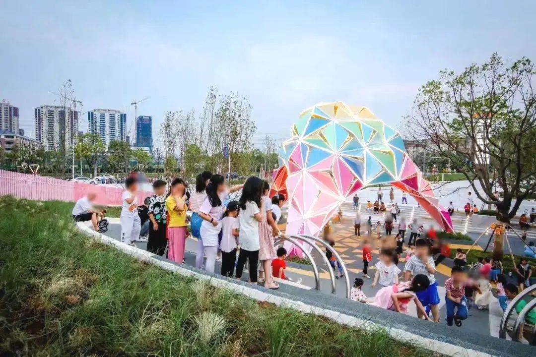 早在2021年,占地约1.5万㎡的现代艺术儿童公园——彩蛋公园就已提前落地,为当地注入全新活力。彩蛋公园整体风格汲取了当代艺术的缤纷色彩与几何图形,明快的色彩碰撞与图形设计,给人轻松愉悦的视觉感受,也更符合孩子爱玩的俏皮天性,成为开发区建筑群落里的全新印记。