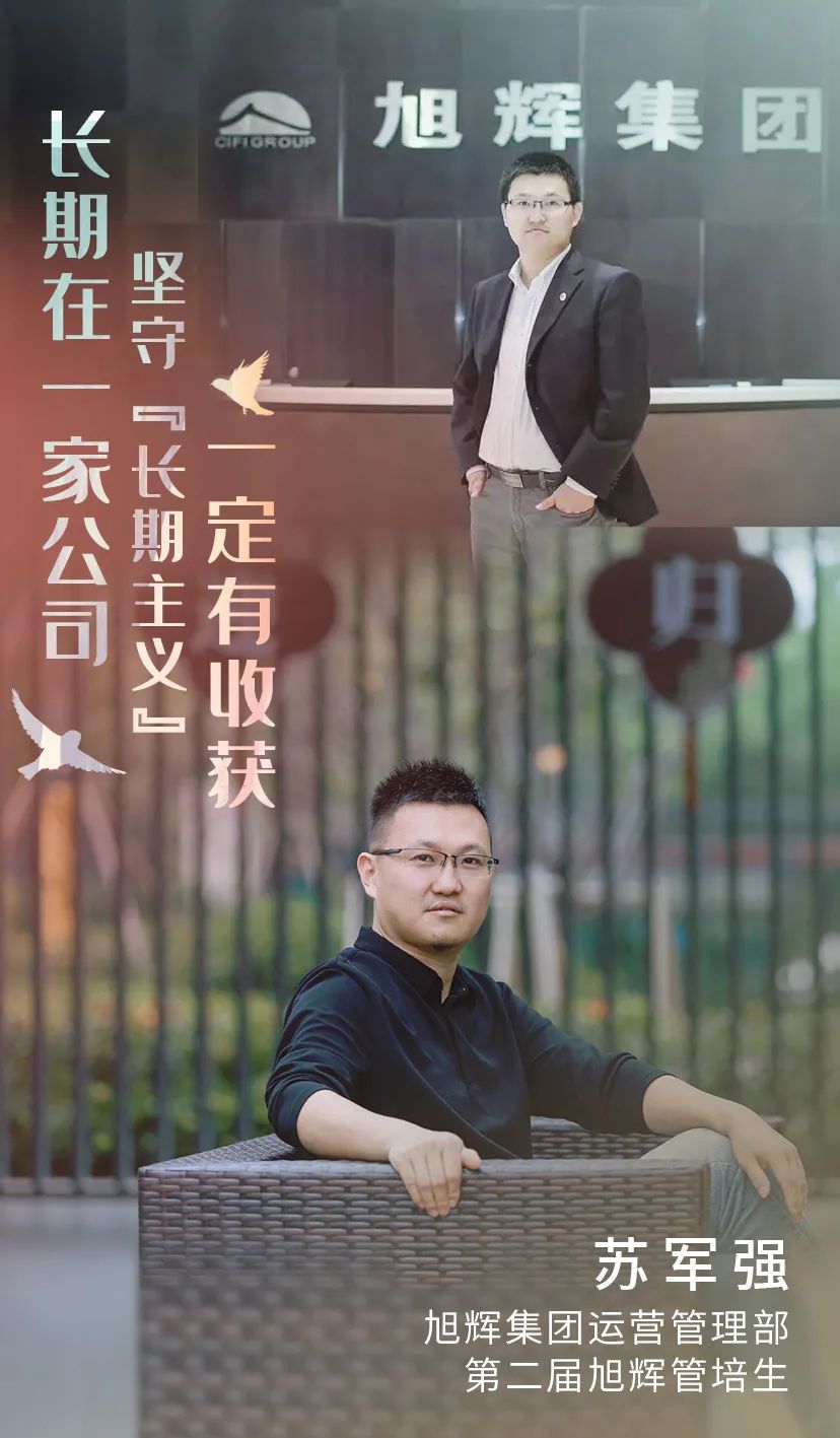开心在于,回到了旭辉,我依然能学到很多东西,获得持续的、更大的成长空间。曾经在旭辉的6年成就了我,是我职场生涯非常重要的阶梯,帮助我走上了更高的岗位。现在回来,凭着这些年在旭辉与行业间所积累的经验,我有信心可以与旭辉一起甘苦与共、再次同行!
