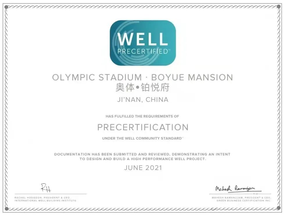济南奥体铂悦府获WELL COMMUNITY STANDARD