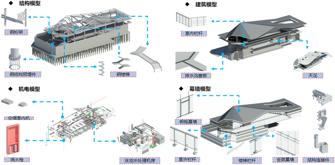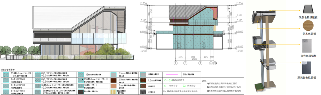 铝板打样、全专业BIM建模、立面三维立体分色图……