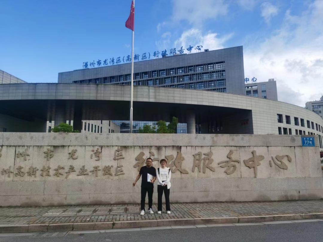 配套负责人和资料员在政府门口合影