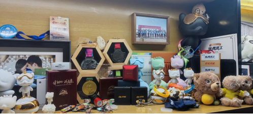 盛立丰的办公桌,有满满一桌子旭辉的纪念品