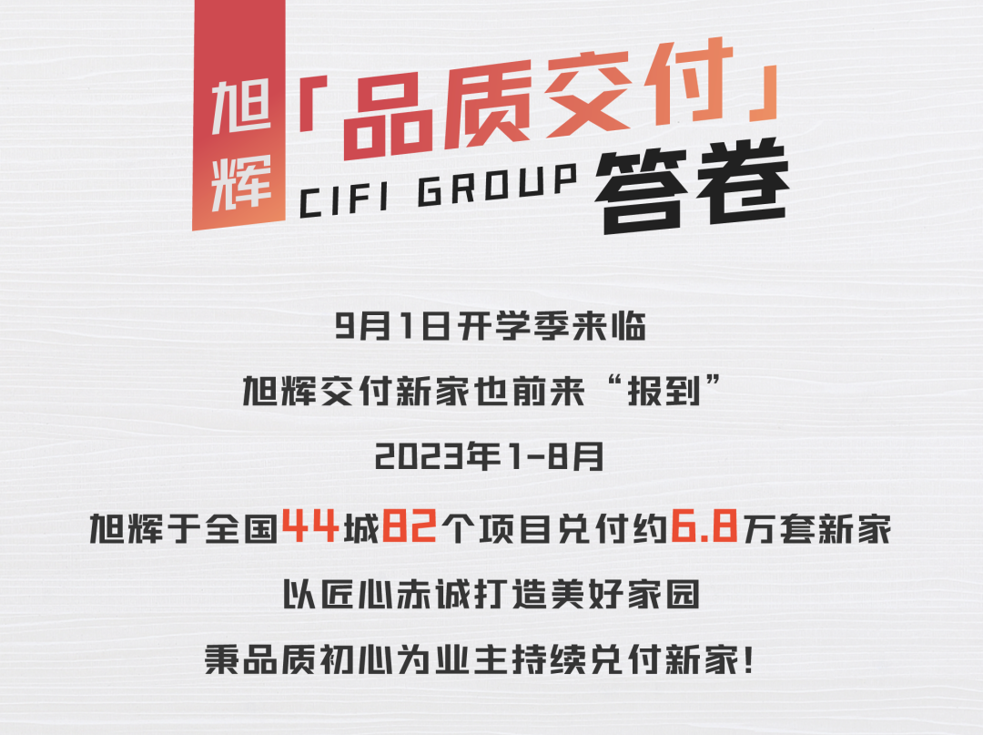 1-8月旭辉交付6.8万套,用心兑付美好家园!