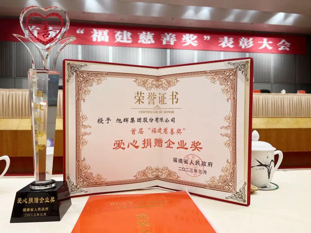 旭辉荣获首届“福建慈善奖”爱心捐赠企业奖证书及奖杯