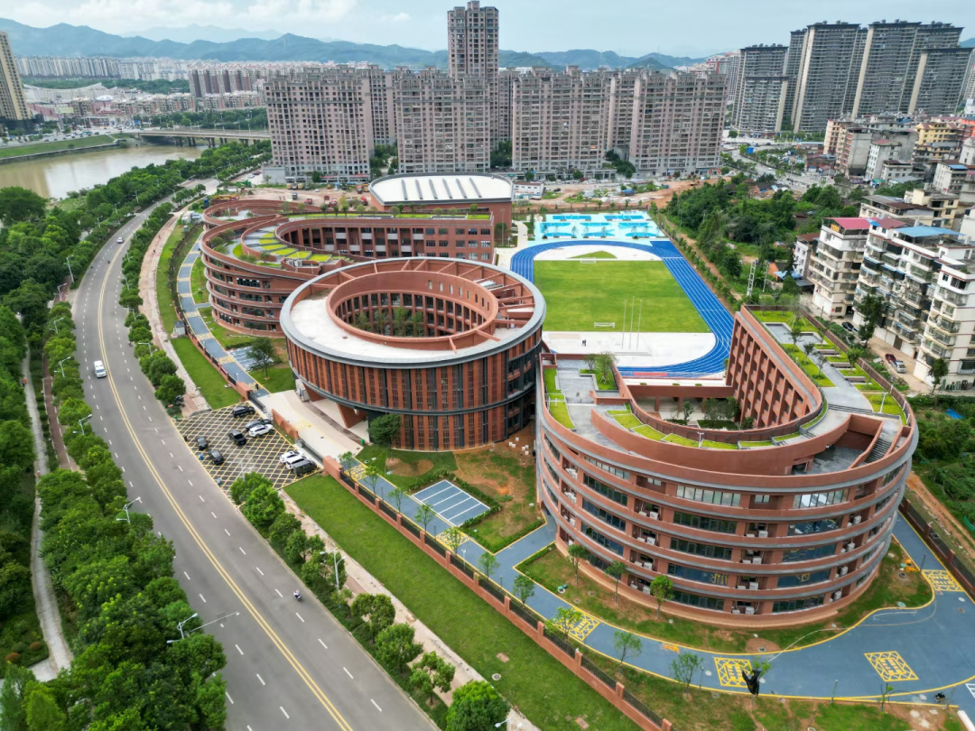 2021年,当了解到福建南平市建阳区学位不足、缺少一所九年一贯制学校的情况时,旭辉再度躬身入局,发挥企业优势参与“南平市旭辉第三实验学校”建设,并承接学校的设计工作。结合闽北红砖建筑特色,旭辉在该校的设计上以南平市花“百合花”为灵感,让校园如花瓣般绽放,寓意“呵护祖国花朵茁壮成长”。不仅弥补了片区教育资源的不足,还为当地增添一道靓丽的风景线。南平市旭辉第三实验学校已于2023年8月底开学季前正式启用。