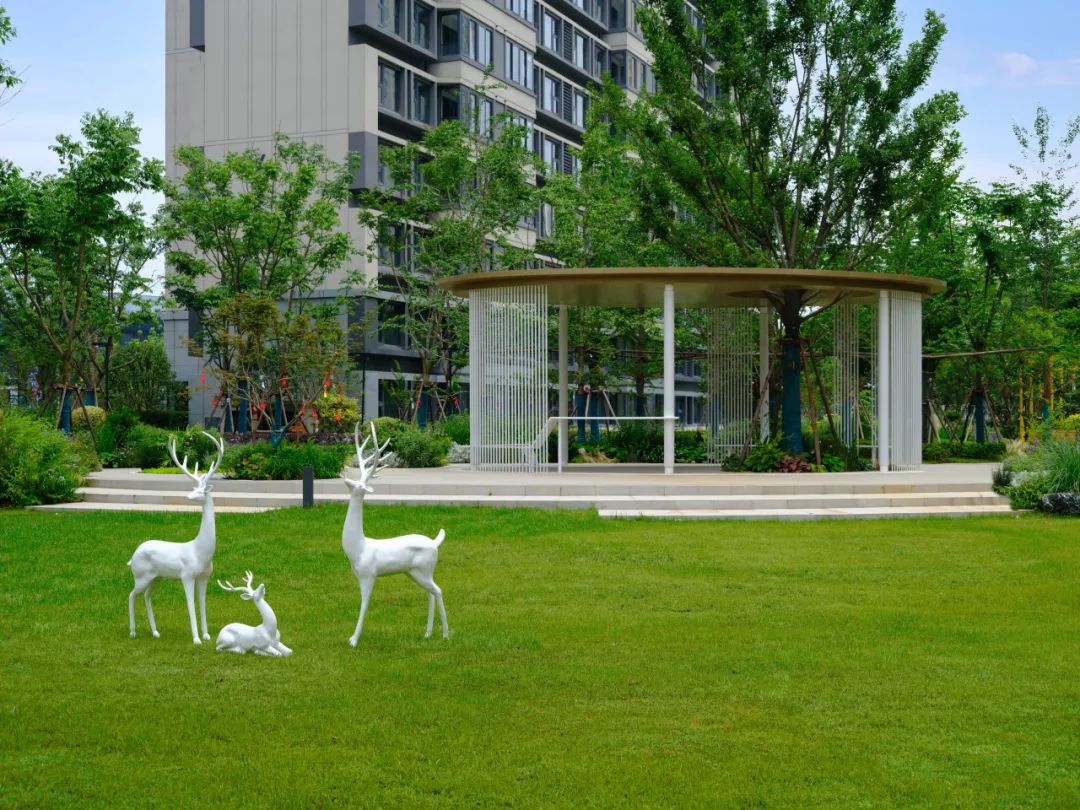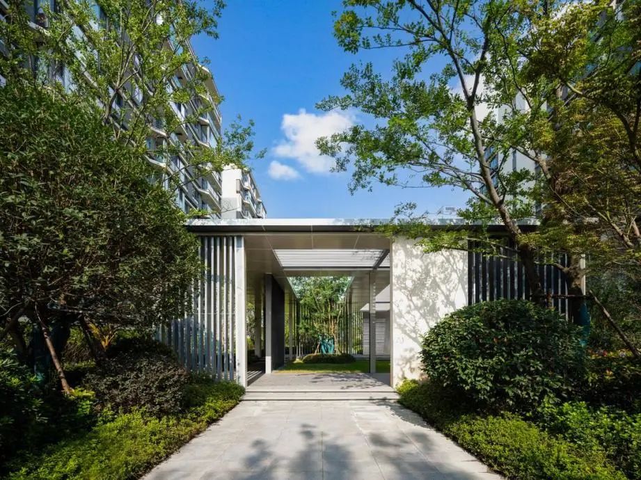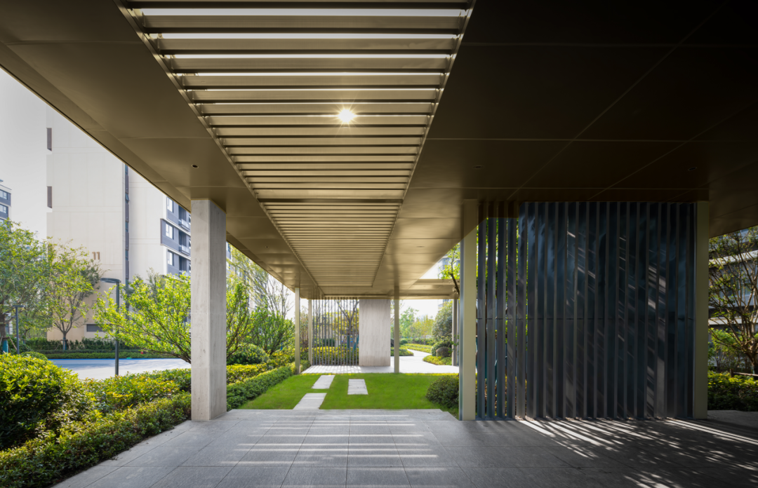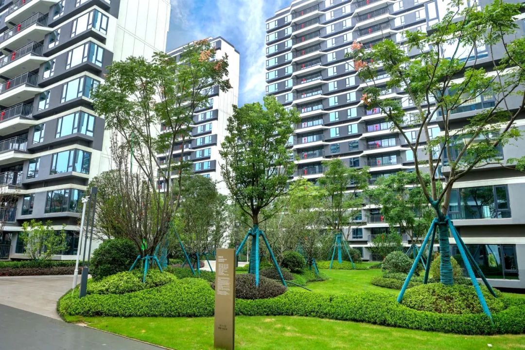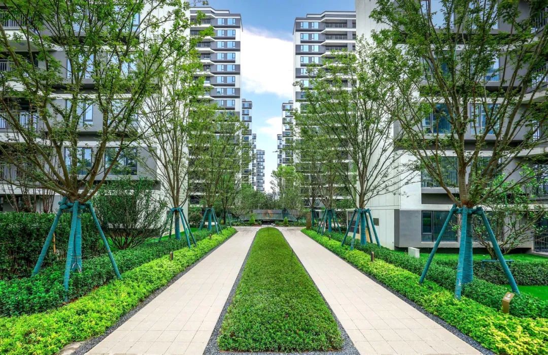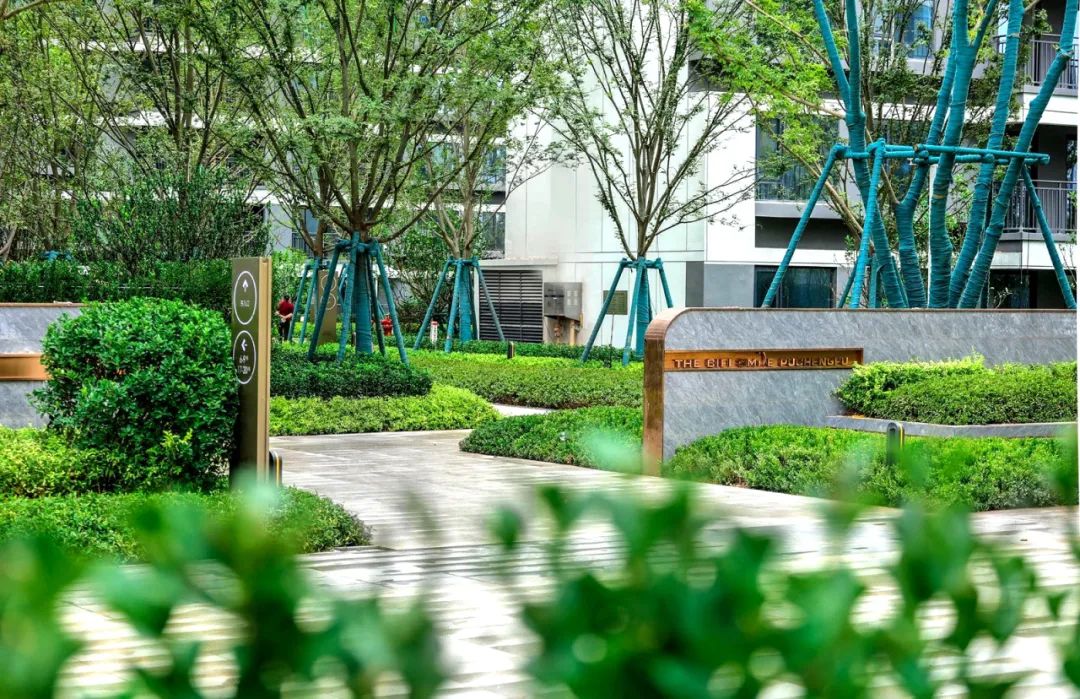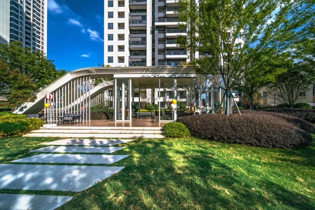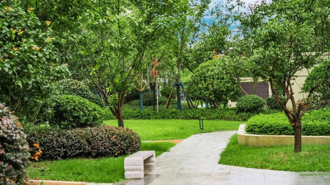 穿过极具空间感的社区入口大堂,道路两旁的绿植与花卉是迎接家人的第一道仪仗。大面积的草坪绿化,错落有致的树木种植,有层次,有艺术感的组合搭配,以绿野葱绿的美,为业主打造“归家如游园”的体验。