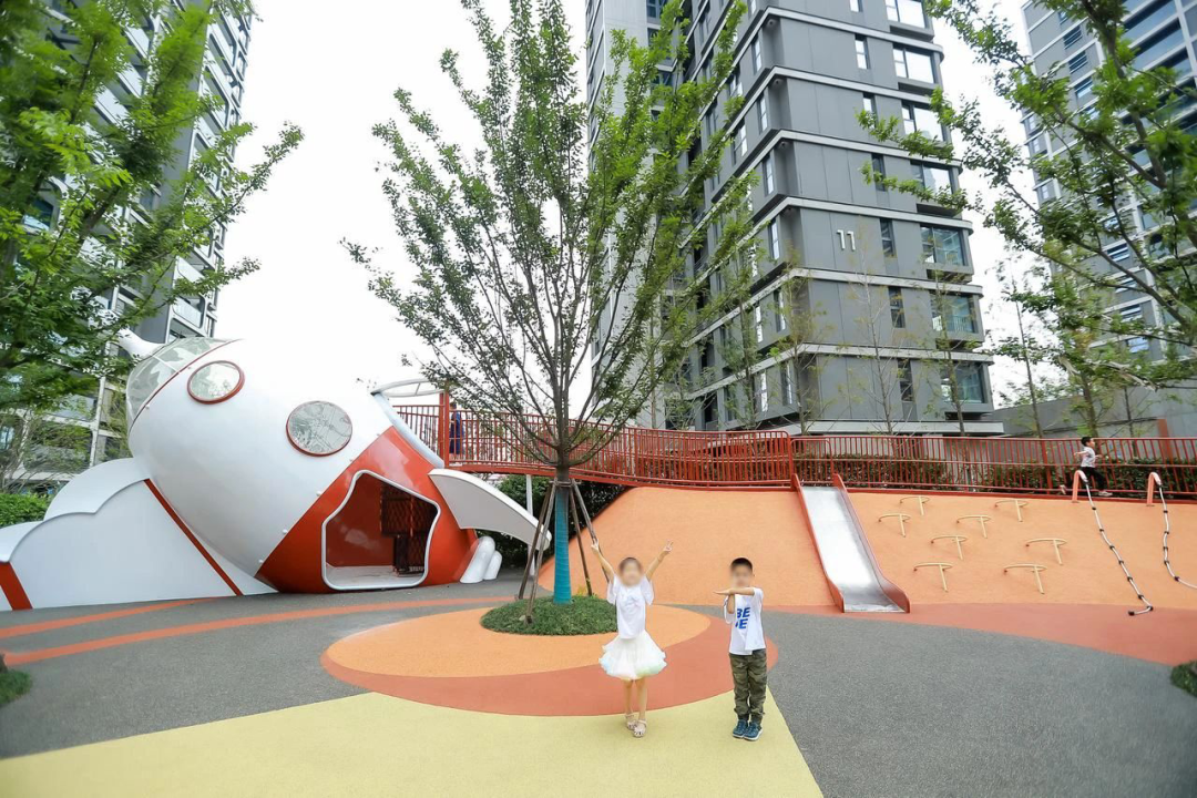 得益于“旭辉透明工厂”园林优先享工艺,提前栽种景观树种,社区园林内充满绿意。同时,落地太空主题儿童游乐园,更有“五大交互场景”让所有年龄段的业主都能乐得其所,找到生活的“主场”。