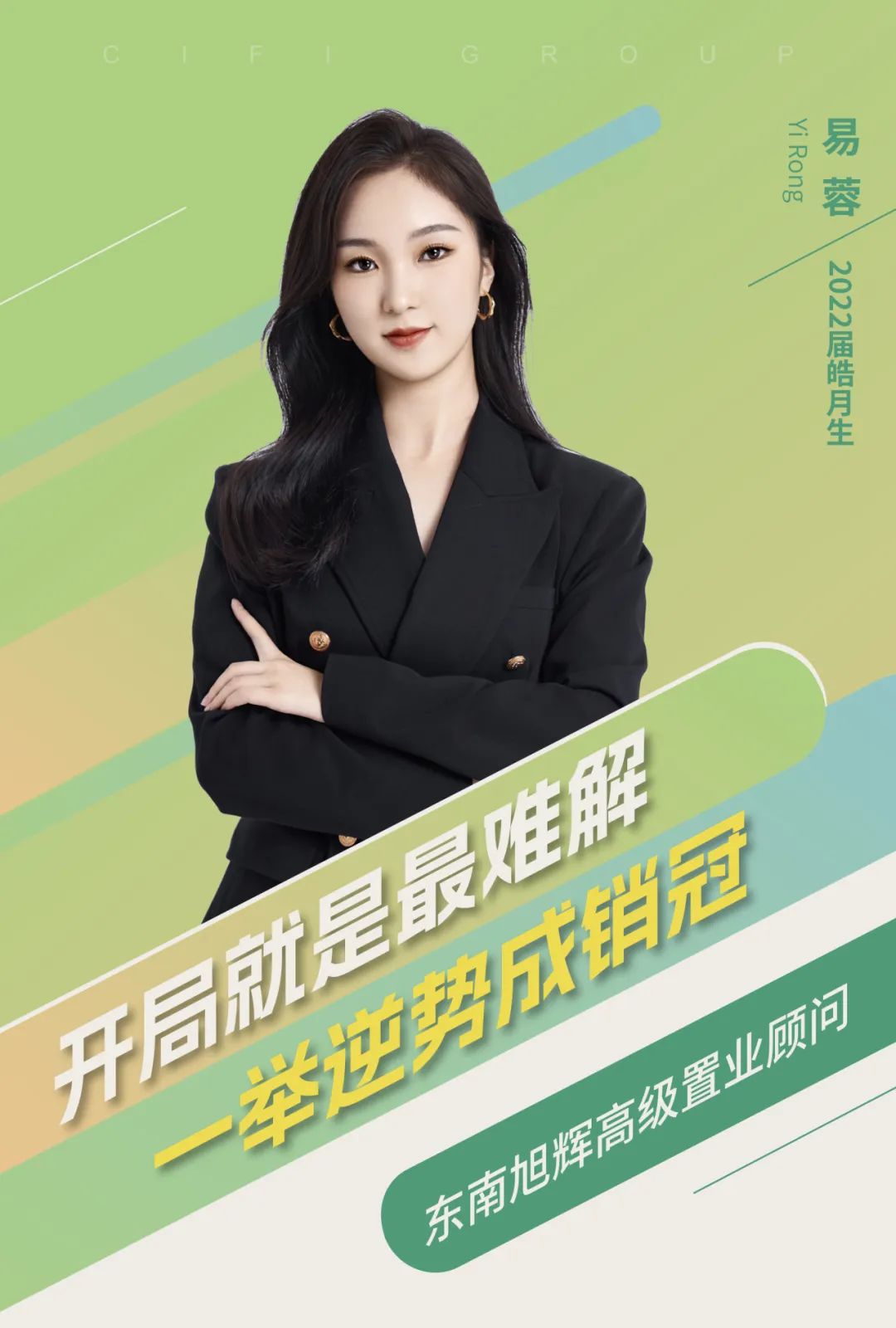 初出茅庐的易蓉,没有想到职场生涯遇到的第一个项目就是“极限挑战”。受限于现金流、工程进度等各方压力,项目难上加难,而刚刚跳出一年“保护期”的易蓉首月便成交6套,一举成为销冠!对于易蓉来说,“真诚”就是必杀技,在面对客户的质疑、犹豫、甚至抗性时,她拿出百分之百的真诚和耐心,一遍遍向客户传递价值,一次次陪同进工地、面签等,客户的信心也在过程中一步步增强。功夫在平时,没有客户的时候,易蓉总是自告奋勇地参与每一次外拓、拜访和中介维护,正是凭借“功夫不负有心人”的努力,易蓉克服了新人+项目的双重挑战,踏出了自己职业生涯的“冠军”步伐!