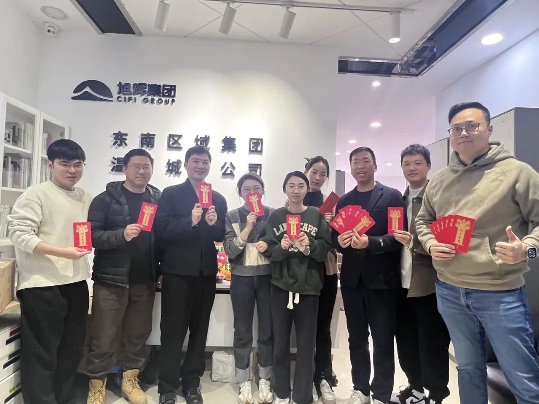 在每个新春的开工第一天派发「开工利是」,是旭辉的一项传统“保留节目”。这背后源自旭辉“以人为本”的初心,一封封「开工利是」由旭辉高管亲手送到每一位伙伴的手中,承载了最真挚的新年祝福,也传递着开工的喜悦和对新一年的期许。