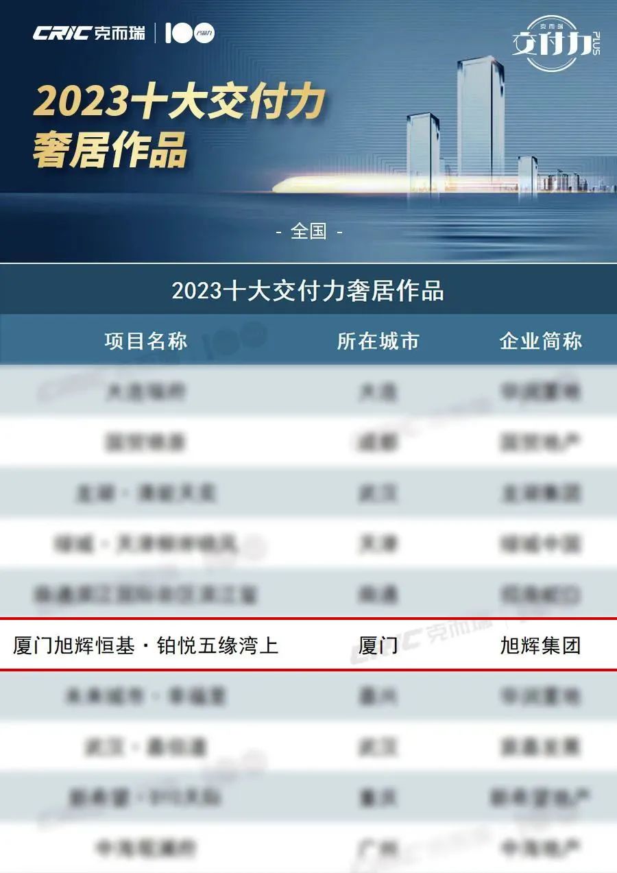 此外,厦门旭辉恒基·铂悦五缘湾上、北京公园都会两大项目突出重围,分别上榜“2023十大交付力奢居作品”、“2023十大交付力安居作品”,双双成为权威认可的行业标杆交付项目!