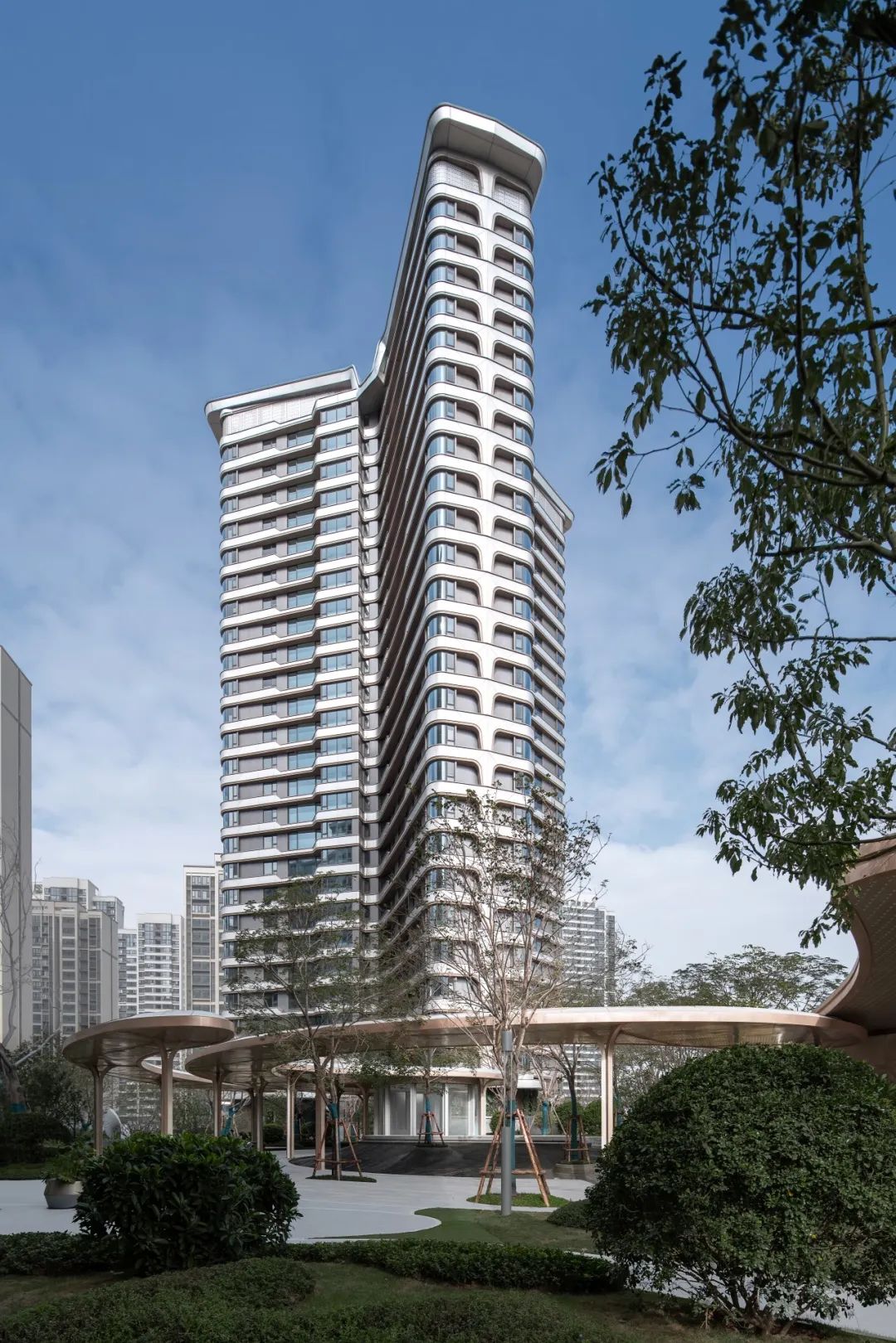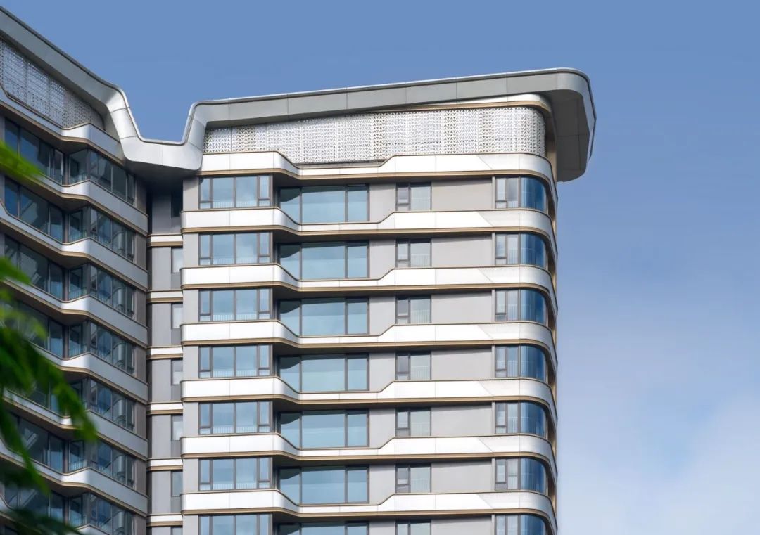 北京公园都会以极具现代感的C大调流线型为外立面,横向线条的交替形成优雅的韵律,金属线脚勾勒收边,体现精致的细节美。