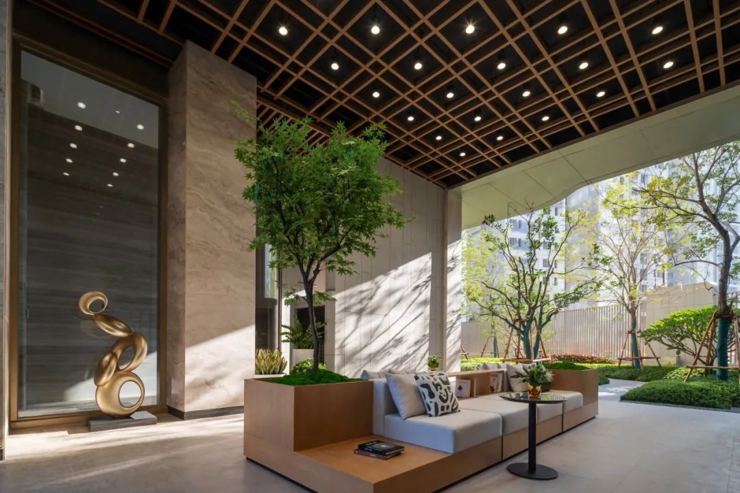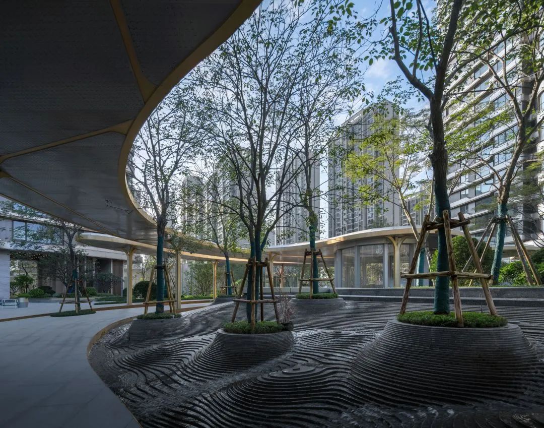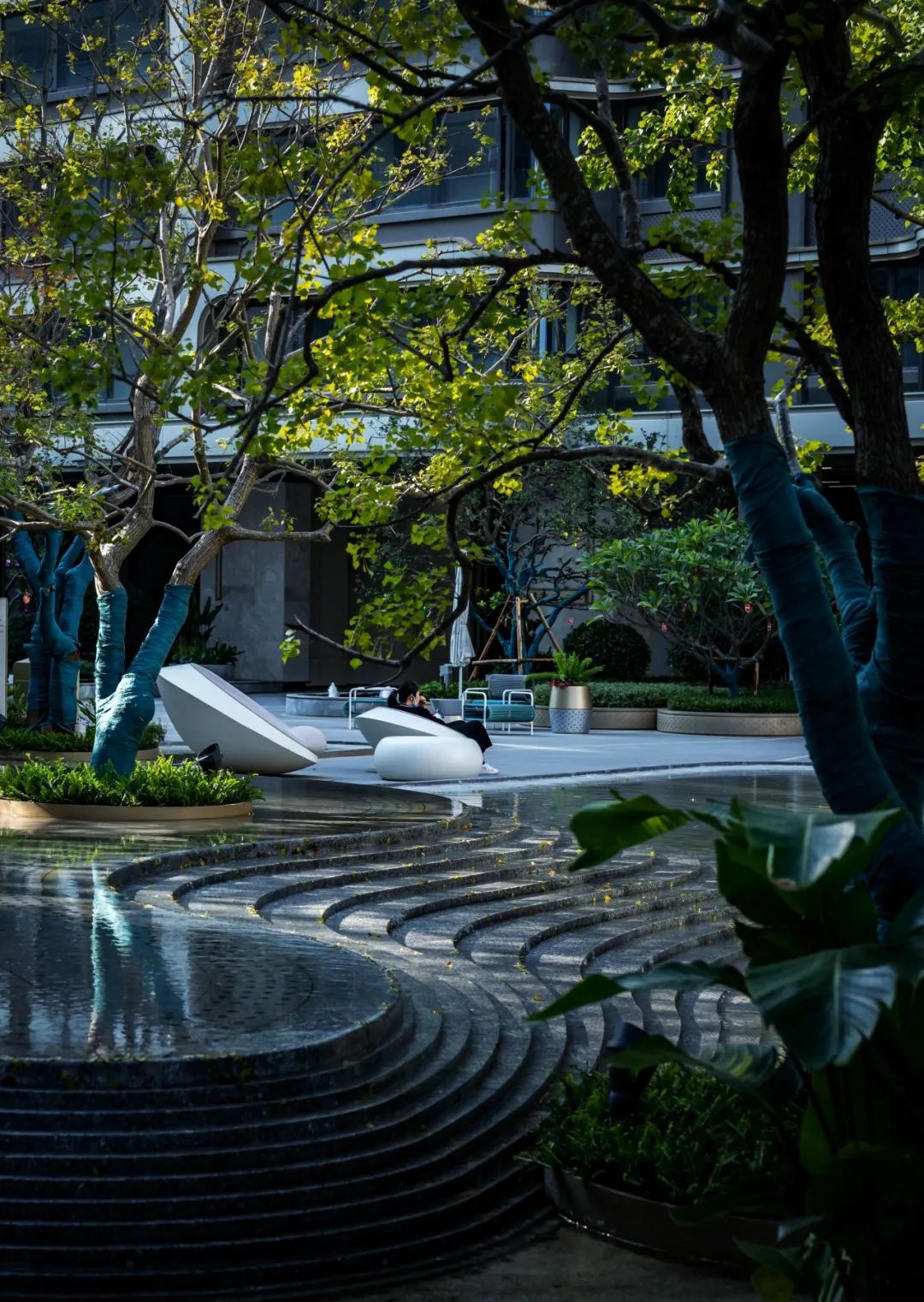 在森系景观的打造上,旭辉铂悦五缘湾上以“海畔森林”为设计原点,“引海入园”打造一片城市中的“自然丛林”。