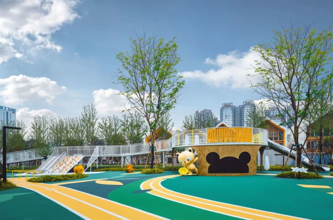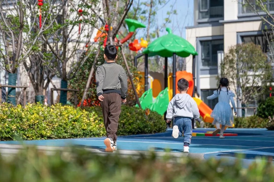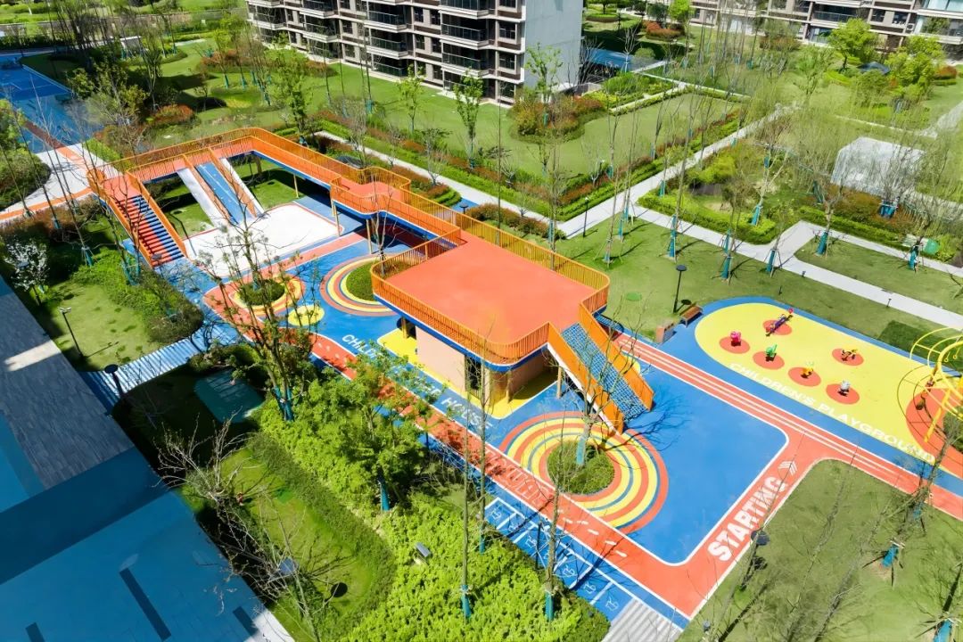 环形森林跑道贯穿社区,中央的儿童成长天地以憨态可掬的旭辉IP“小旭”,给予孩子温暖的成长陪伴。