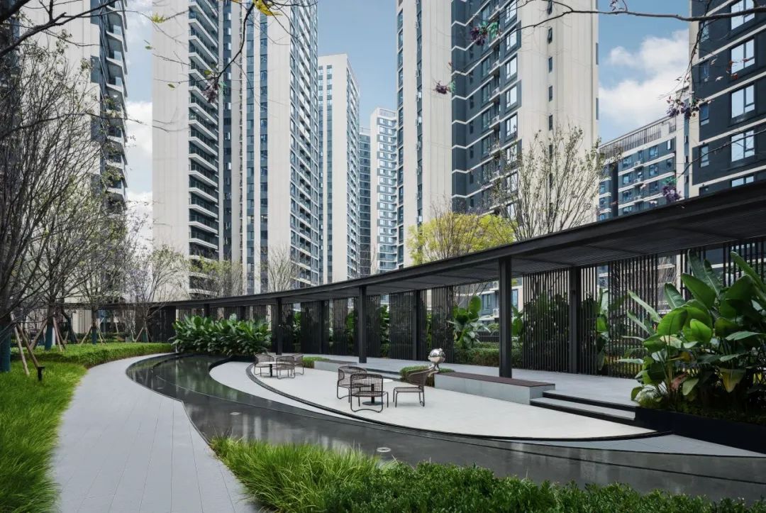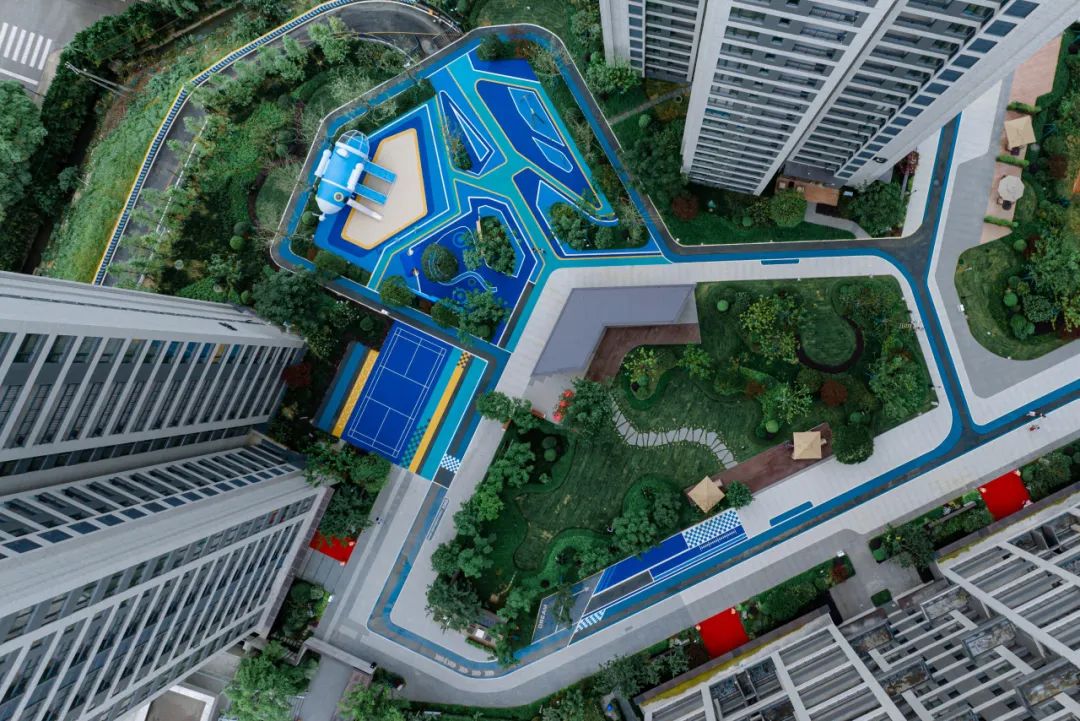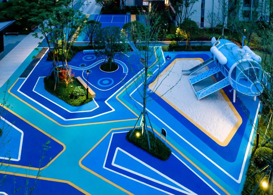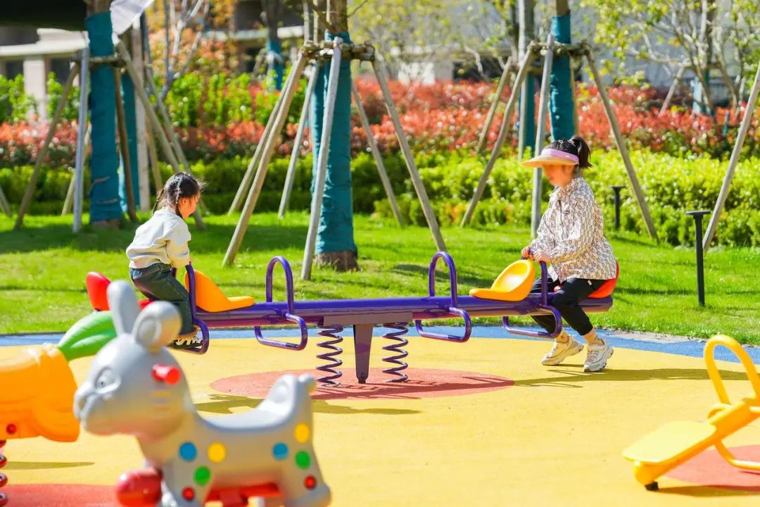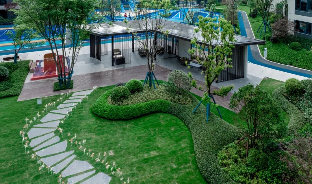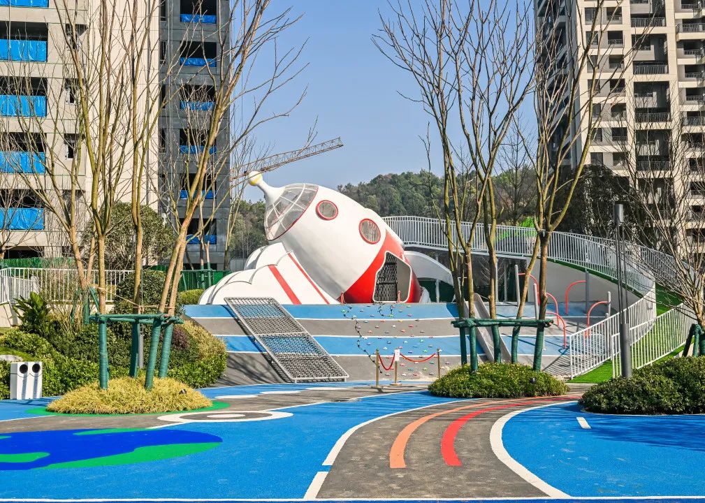 喜悦感满满的交付社区内,道路两旁的绿植是迎接家人的第一道仪仗。社区景观空间追求与自然共生,落地CIFI-7太空主题儿童乐园,串联起全龄乐活的日常。