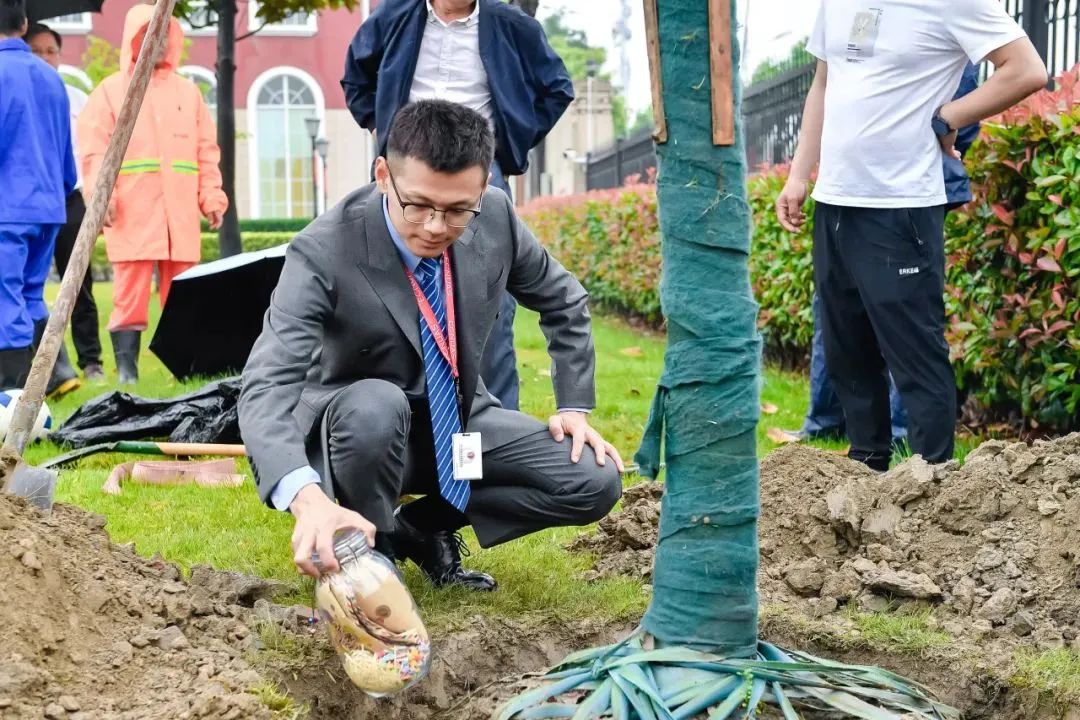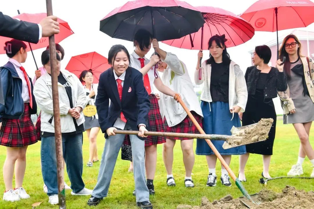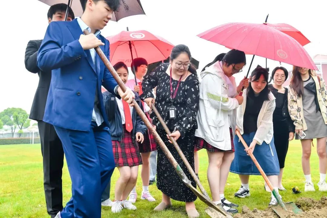 一封封《致十年后的自己》的信件被小心翼翼地放入漂流瓶,埋入华双户外草坪的这片土地里,毕业生们又在这里栽种了一棵具有特别意义的香樟树。这是2024届毕业生敬赠给母校的礼物,也是留给自己的一个念想。希望十年后,无论道路多么崎岖,大家依然不忘初心,踏过荆棘,勇敢追梦。