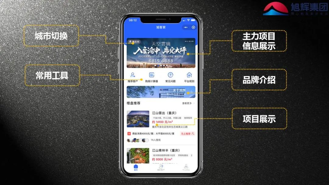 近日,旭辉项目移动端展示平台、全民经纪人转介平台——旭客家,已正式上线!覆盖了55个城市134个项目,旭客家与旭辉客户们,共同开启数字化营销1.0时代。