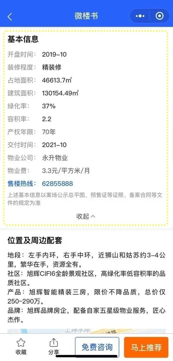 点击任意项目或搜索心仪项目,即可进入该项目的微楼书,展开基本信息就能了解更多项目详情。