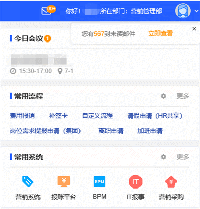 不仅用户入口被高度整合简化,企业的门户还很“聪明”。点开淘宝,被自动推送心仪商品的经历,大家都不陌生,这样的“用户友好”,在旭辉也轻松get!不同的职能、不同的操作习惯企业门户它都懂,不同用户点开的界面“千人千面”,系统根据所在职能和操作频次,自动为用户匹配了常用的流程及应用。