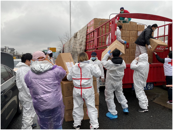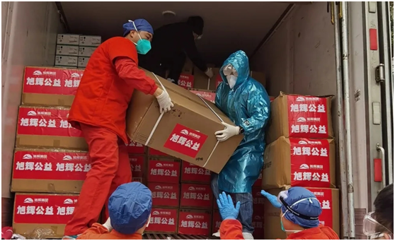 相比于单纯资金的捐赠,旭辉人显然选择了一条难度最大的公益之路,那便是“躬身入局”,身体力行的调动一切可调动的资源,筹集抗疫一线最紧缺的医疗物资,亲自送往最需要的战役前线。武汉封城第五天,旭辉成立专项基金后不到48小时,第一批捐赠武汉的物资共计74.4万双医用手套就送到了武汉协和医院、武汉市第三医院、武汉市第九医院以及武汉市汉口医院医护人员的手上。